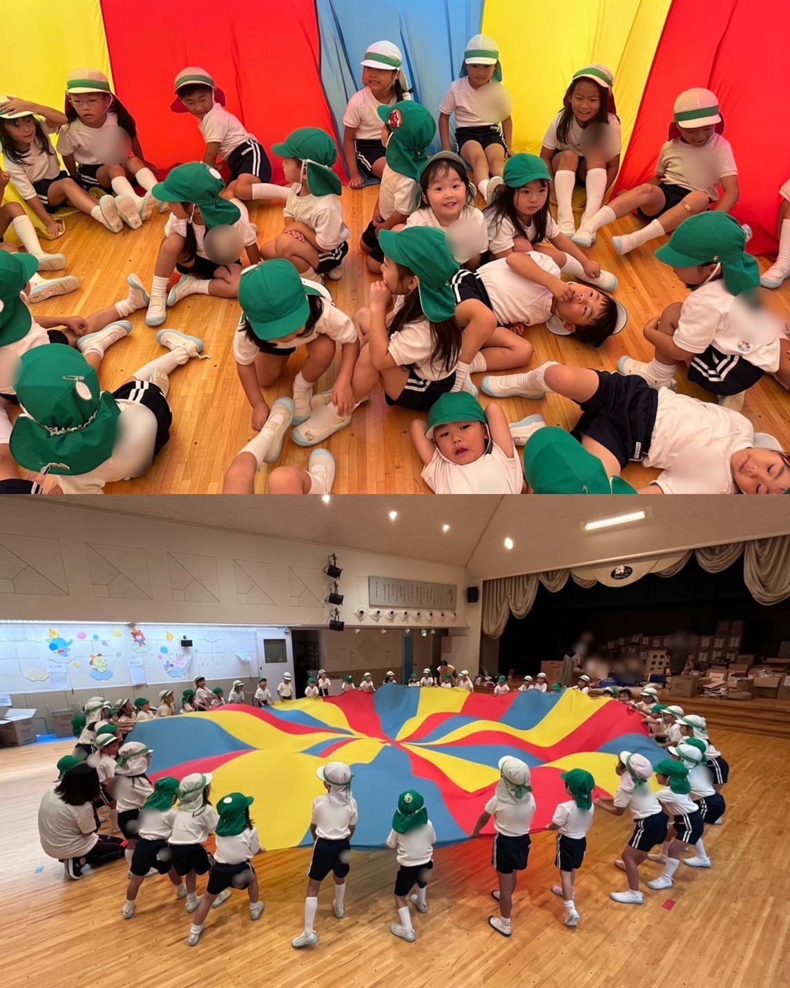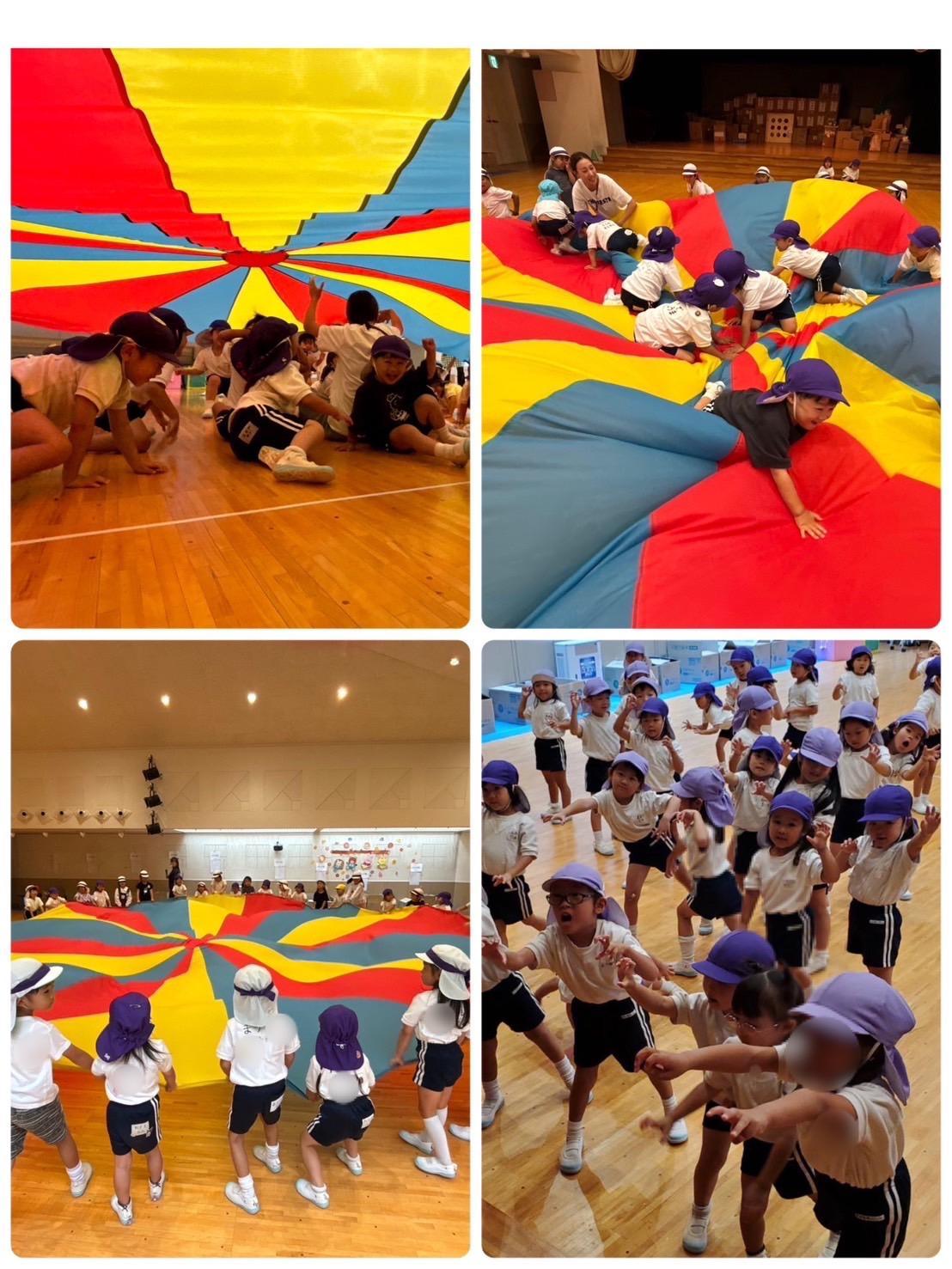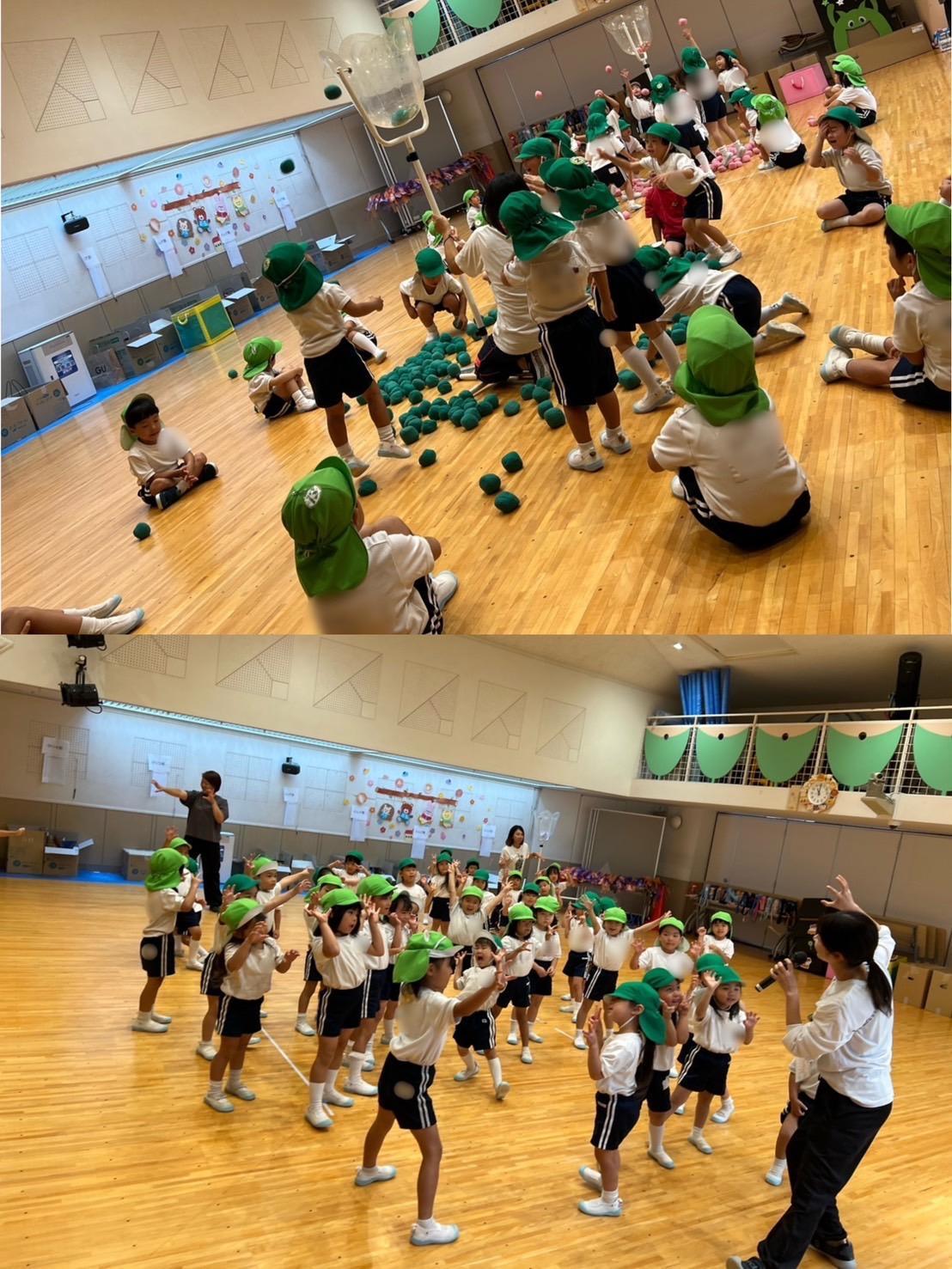 その後はれんげ組・ゆり組のお兄ちゃんお姉ちゃんと一緒にパラバルーンや玉入れ、ダンスをしました⭐️