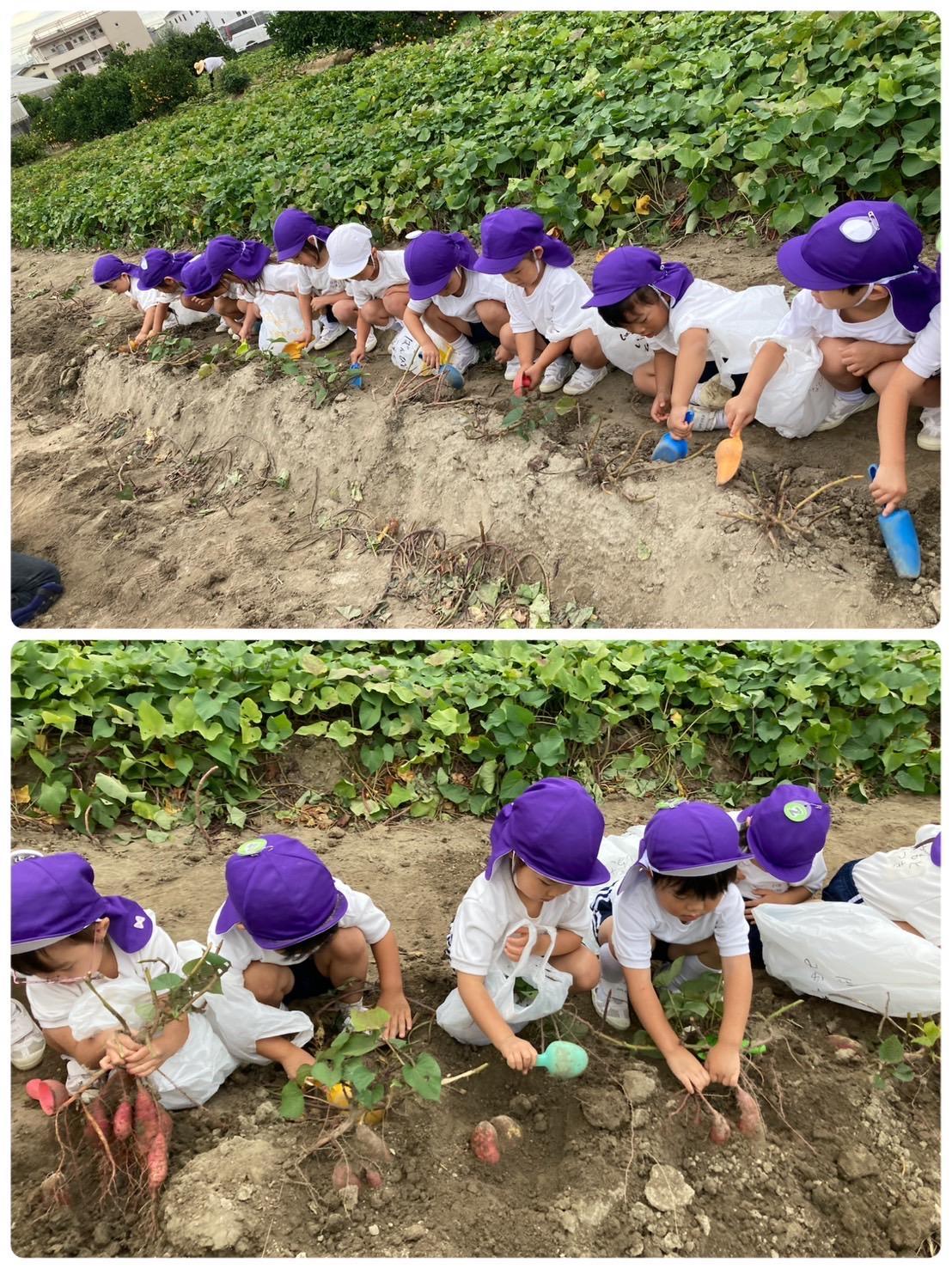 運動会の前から楽しみにしていたお芋掘りでは、スコップや手で一生懸命土を掘り、大きなお芋を見つけて大喜びの子どもたち🍠✨