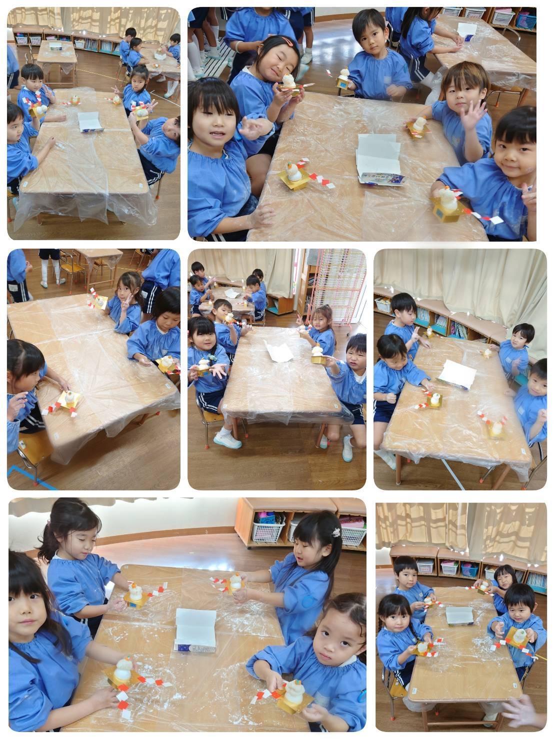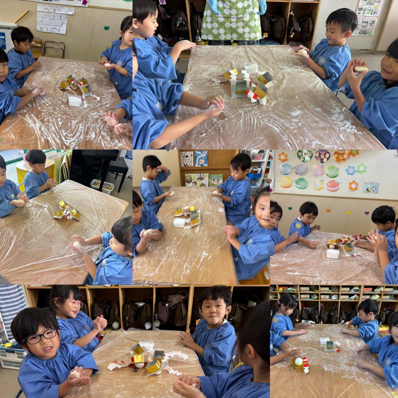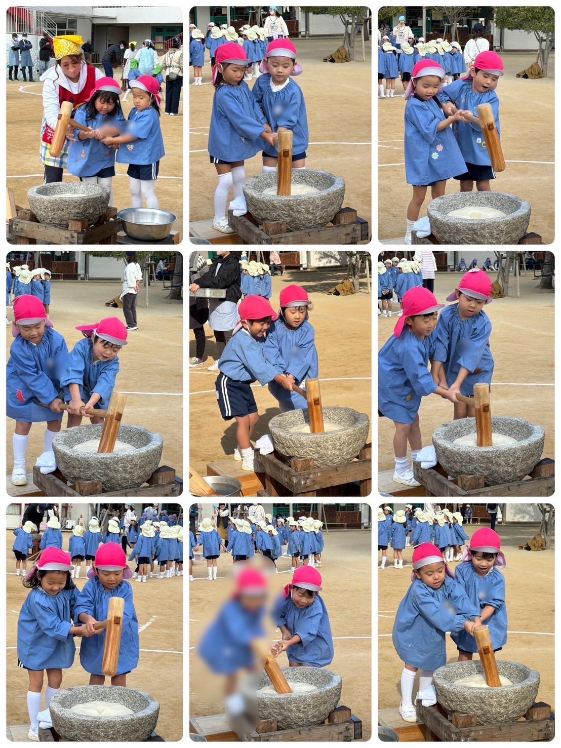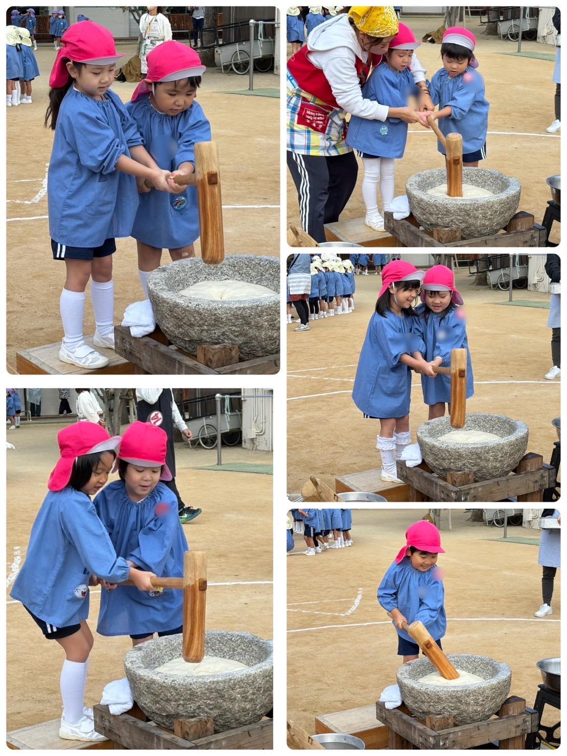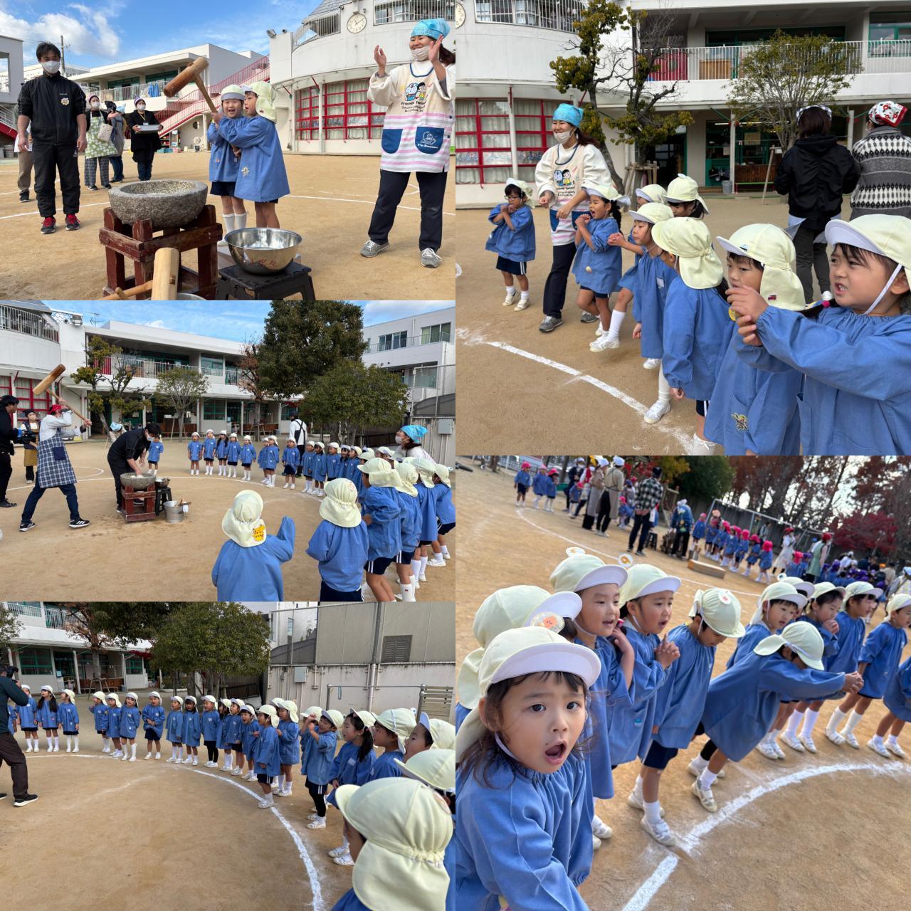近くで見たり、友だちと一緒に重たい杵を持ってついてみたり、大きな声で「よいしょー!」と応援もして、部屋に帰ってからはつきたてのお餅で鏡餅作りをしました✨️