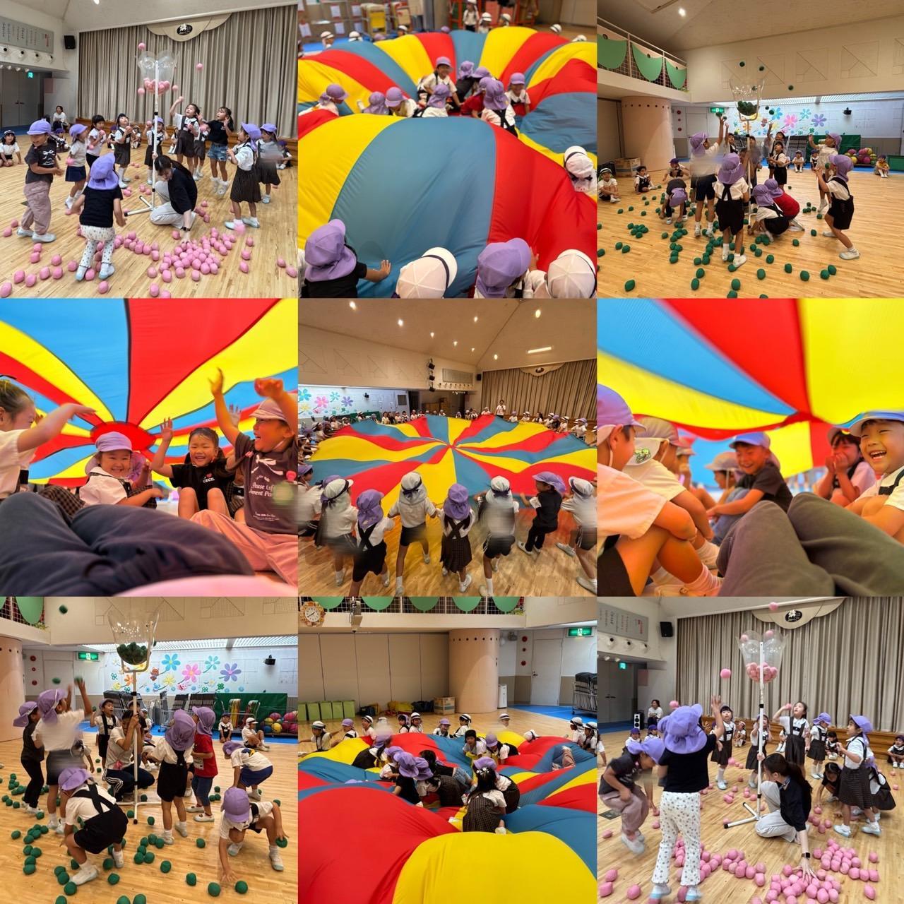 先日には、同じ色のペアクラスのばんび組さんゆり組と可愛い ダンスをしたり、パラバルーンを目をキラキラさせながら楽しく触れ合い遊びをしました!