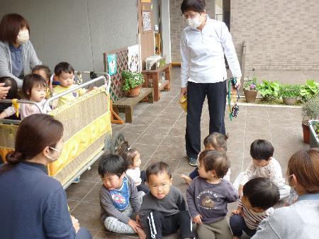 サイレンの音に驚き少し泣いてしまう子、キョトンとしている子、すぐに集まる子など様々な姿がありました。保育士に抱っこされたり、「お外に行くよ!」の声掛け誘導で避難することができました。