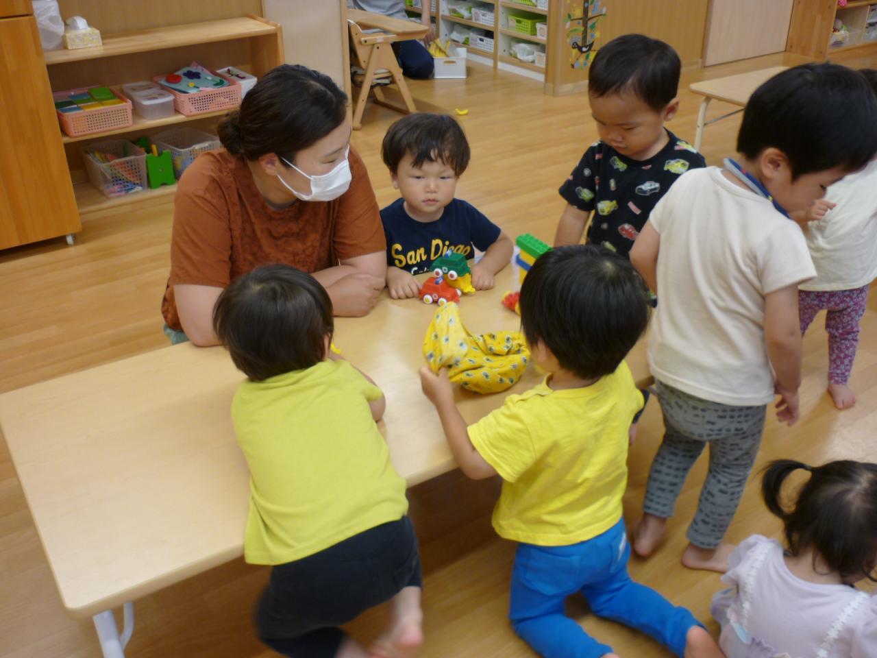 朝の会では、みんなが大好きな「あっぷっぷ」の絵本を読んでいただき、