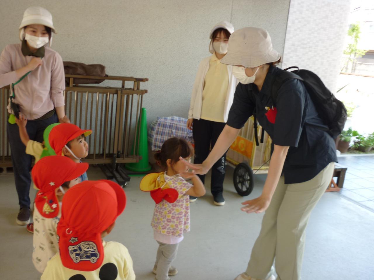 朝の会ではみんなが大好きな「だるまさんが」と「だるまさんと」の絵本を読んでいただき、一緒に体を揺らしたり、手を動かしたりして遊びました。