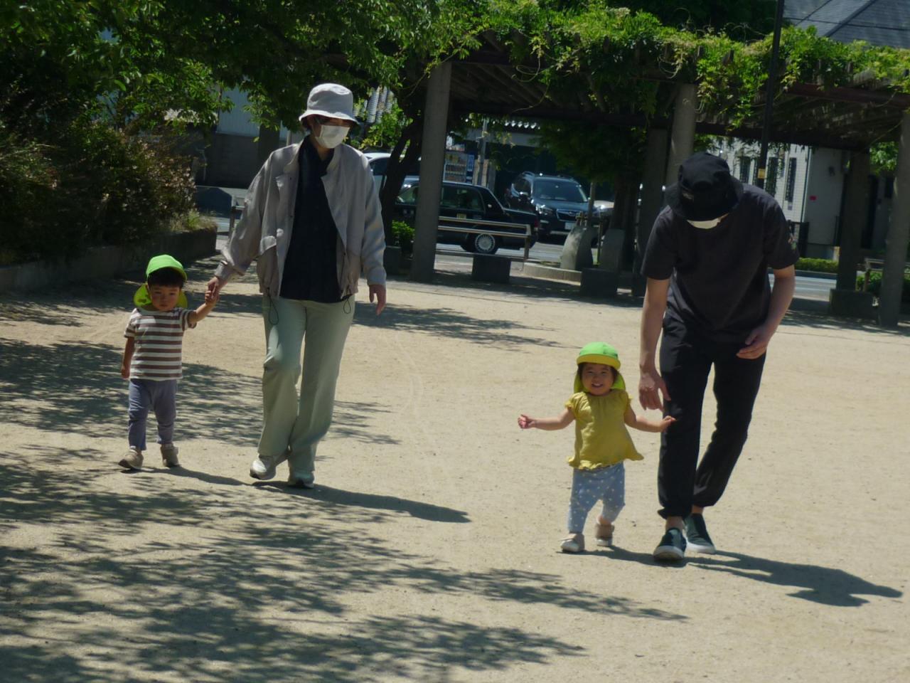 公園では砂遊びをしたり、汽車の遊具に乗ったり元気いっぱい遊び、お父さん・お母さんからたくさんの素敵な言葉のシャワーをかけて頂きました。