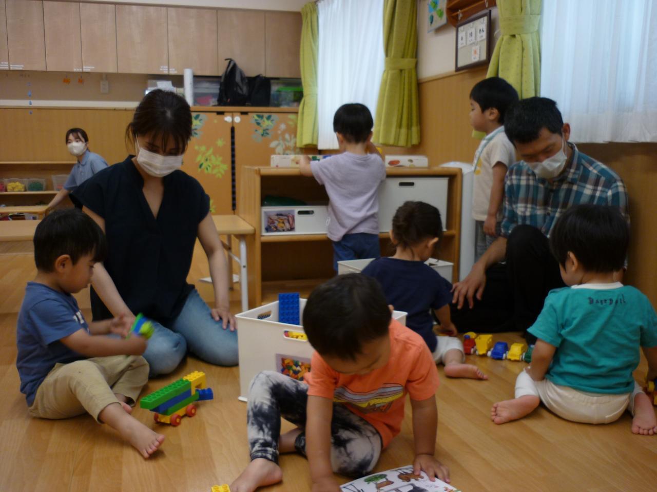何度も保育参加に来られている保護者の方だけあって、一人ひとりの子どもを気づかい優しく話し掛けて下さる姿や、おもちゃの取り合いをしている子どもの仲裁をして下さっている姿も見られ、とても頼もしく、色々とお手伝いして頂きました。