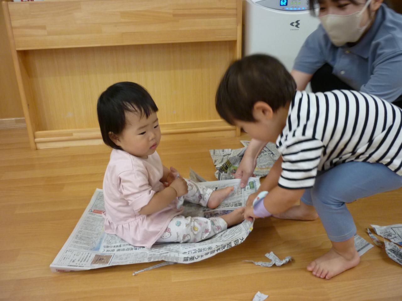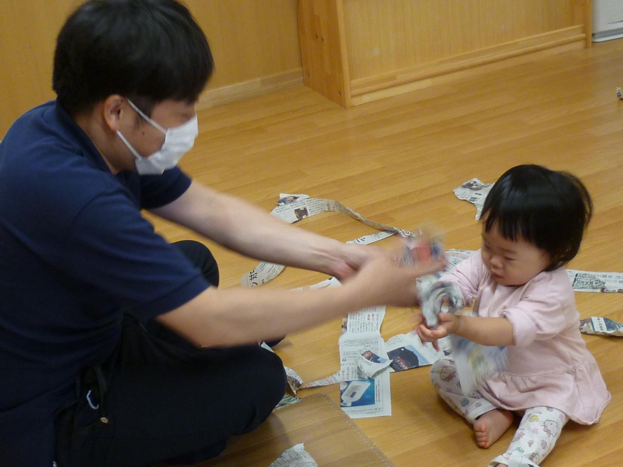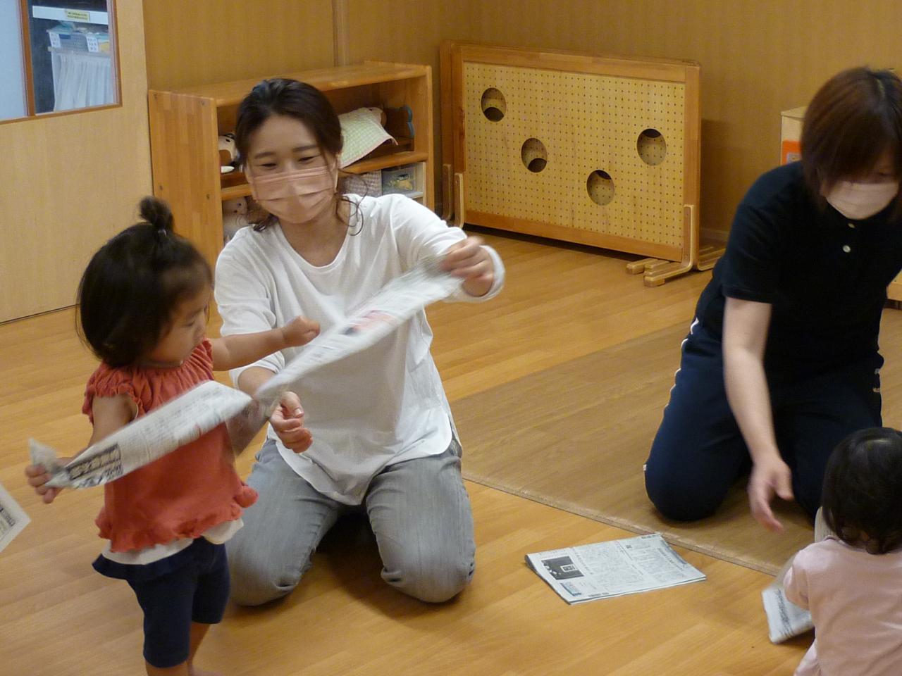 新聞を使って様々に工夫をしながら、お父さん・お母さんと一緒に遊びました。
