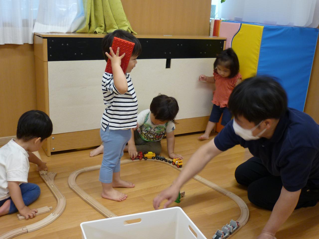 最後はみんなでゴミ収集車になりきってお片付け。お部屋はピカピカになりました。