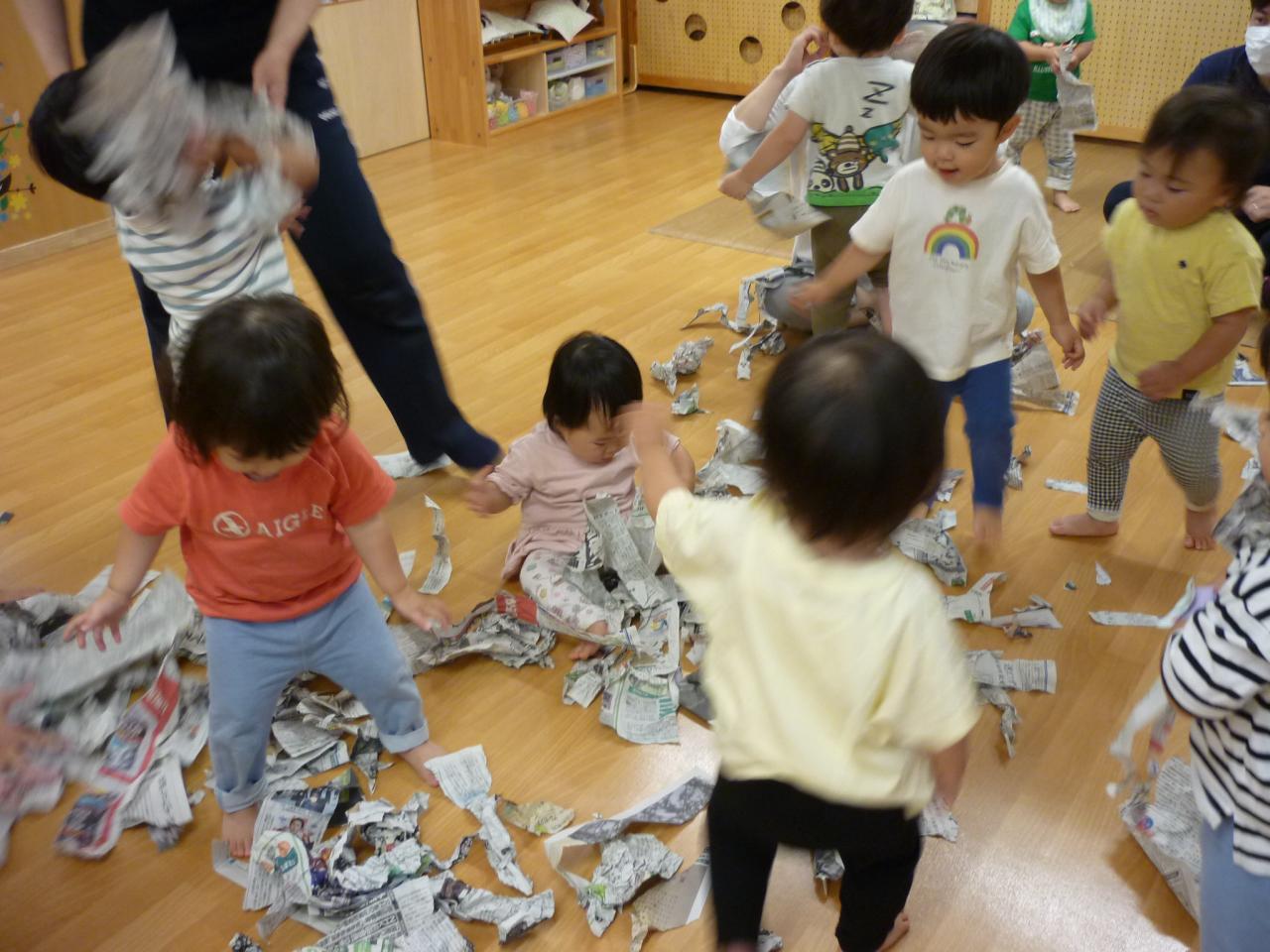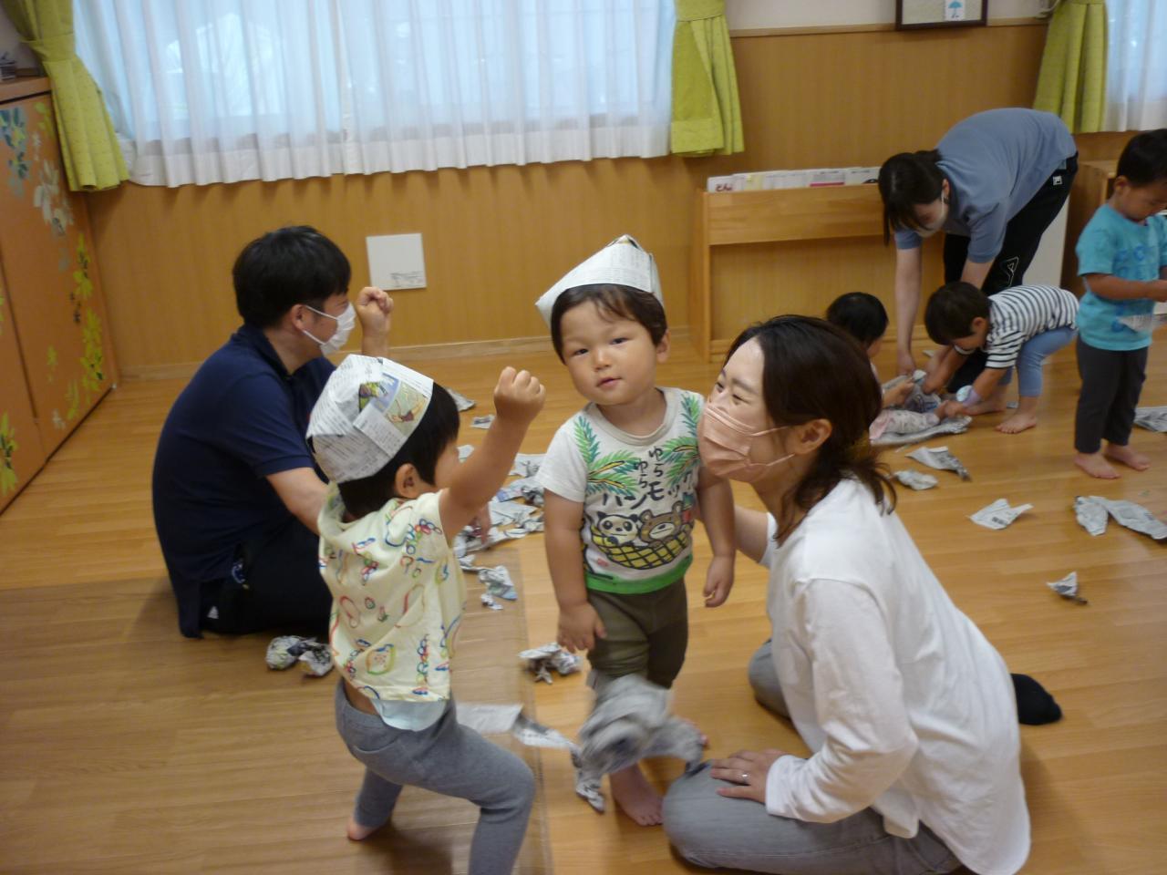 あいにくの天気でしたが、お部屋で製作遊びをしたり、新聞遊びをしたりして楽しく過ごしました。