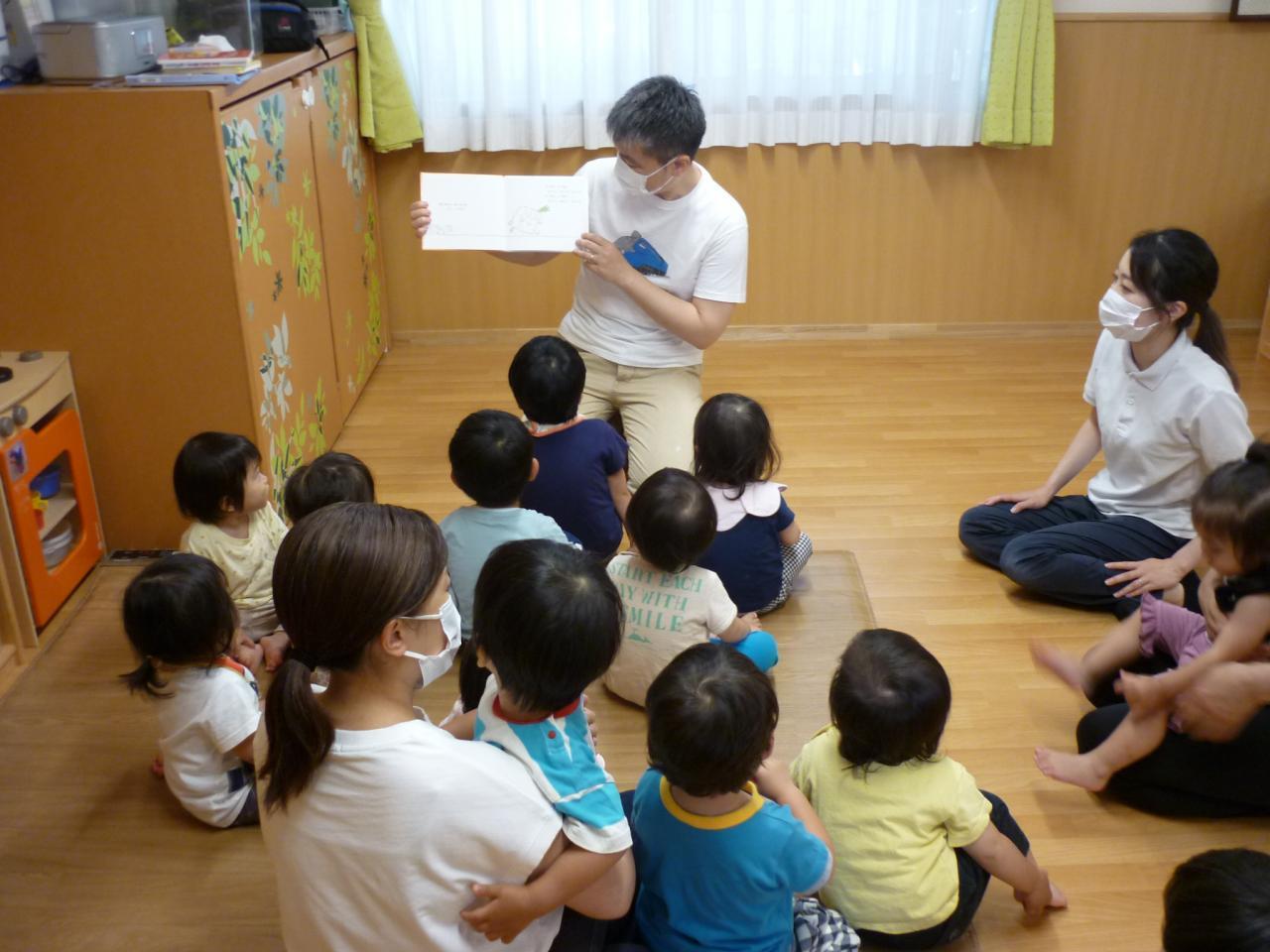 子どもからのリクエストでお父さんに絵本を読んで頂き、お父さんの静かで低い声に子ども達は絵本にくぎ付けでした。