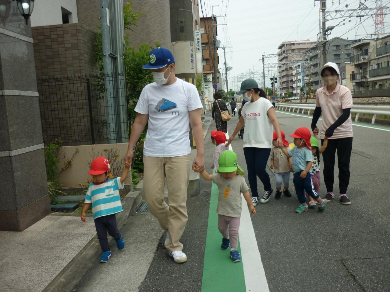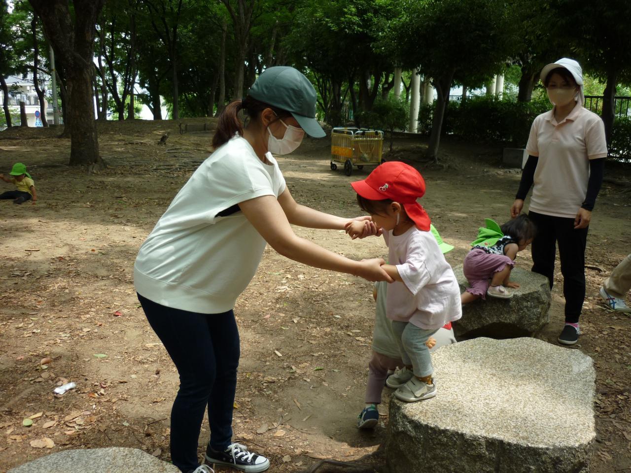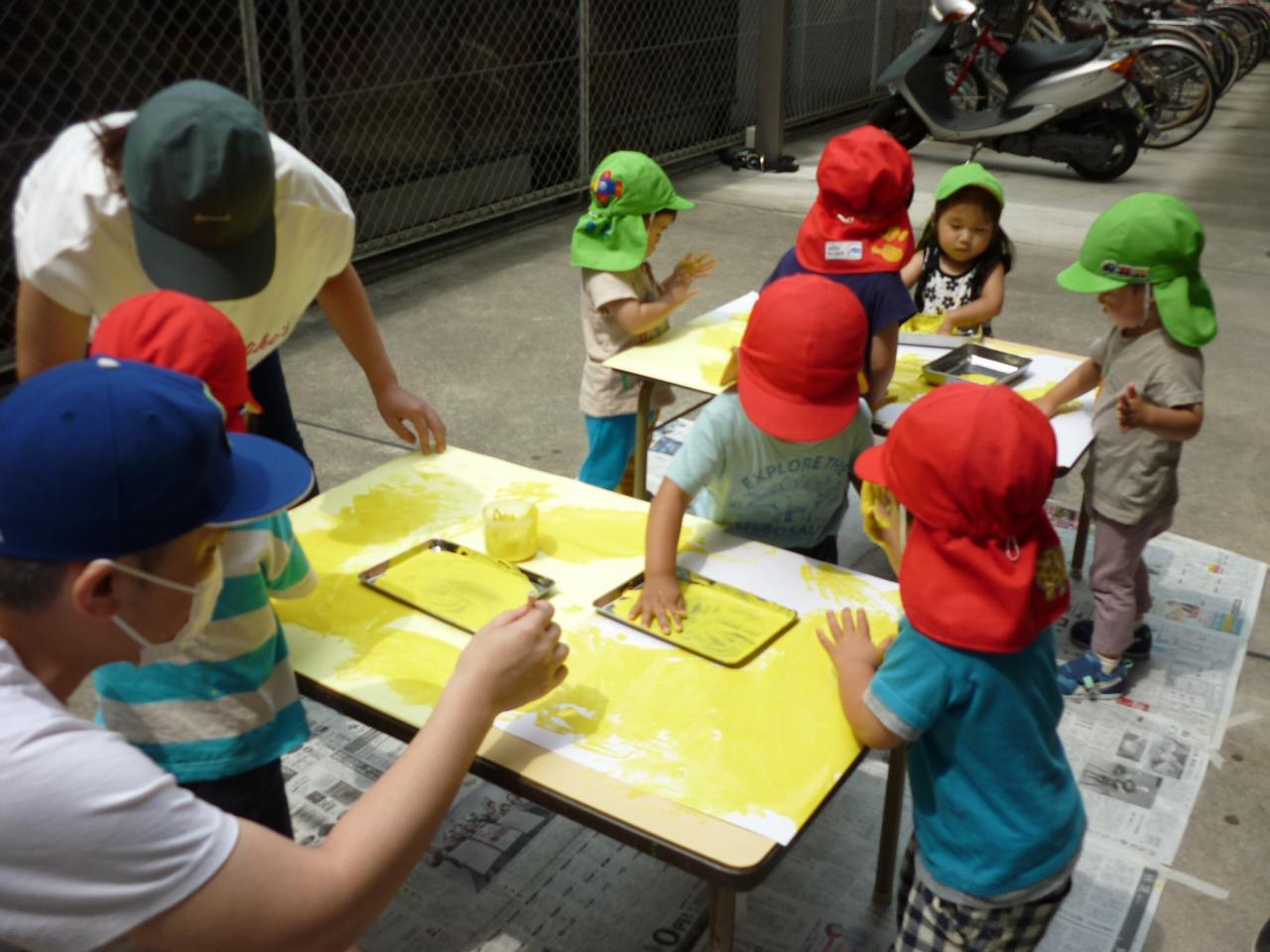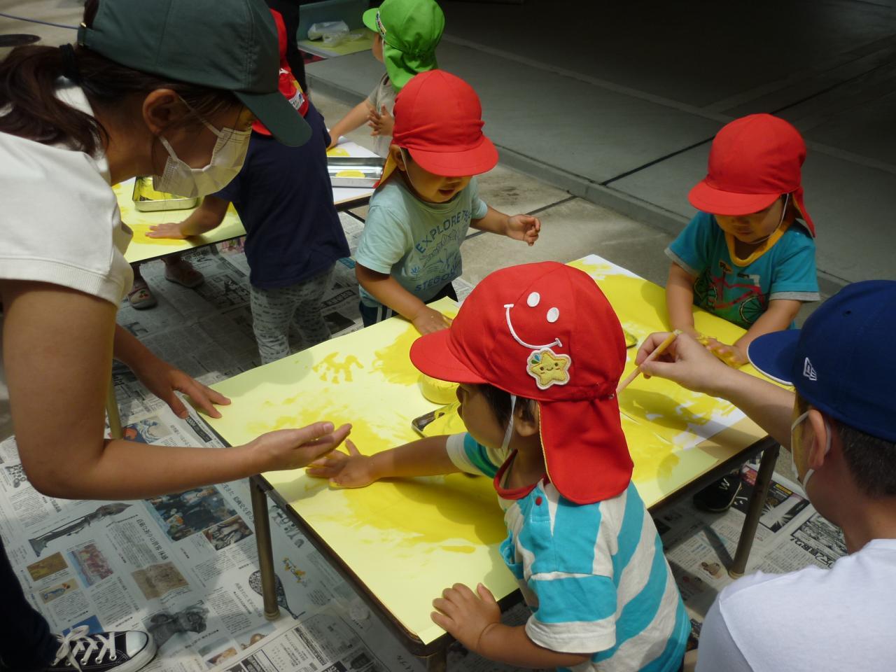 七夕製作のぬたくりをしてから大井戸公園へ!一足先に公園で遊んでいたお友だちと合流し、みんなで追いかけっこをしたり、お歌を歌ったり、木がたくさんある森の木陰で元気いっぱい身体を動かしました。