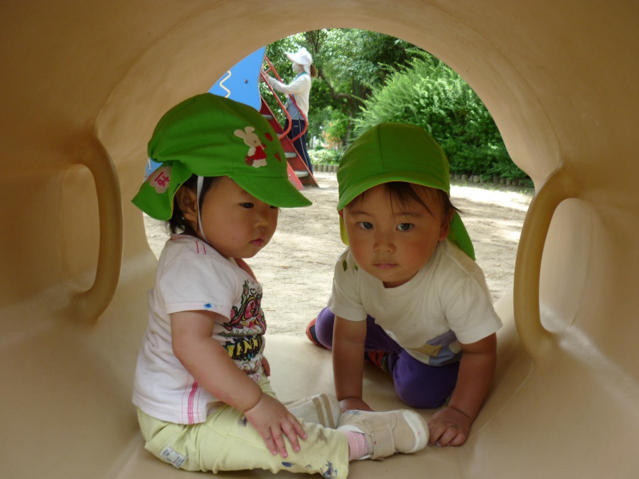 滑り台などの遊具を楽しんだり、お友だちと「まてまて~」とおいかけっこしたり、、、