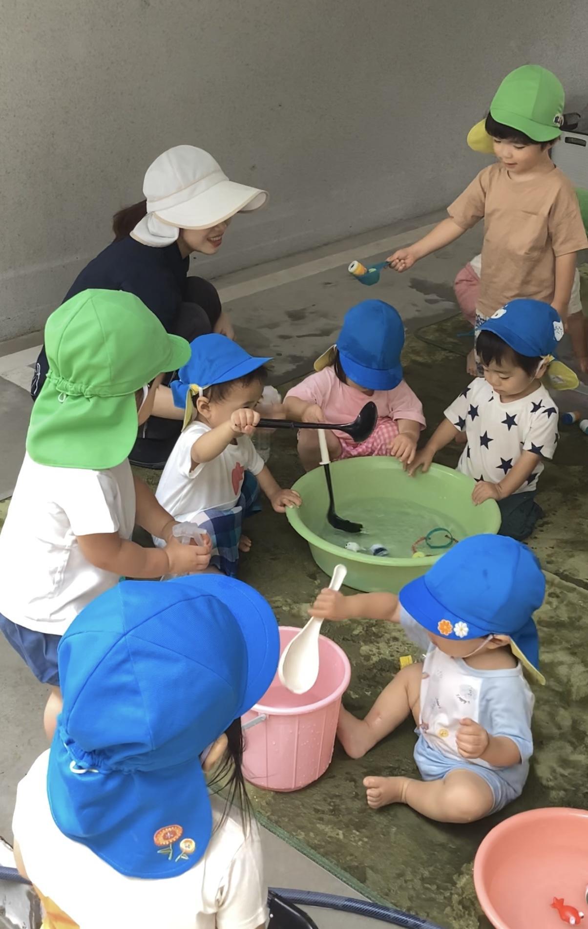 子どもたちは7月12日から水遊びを楽しんでいます。