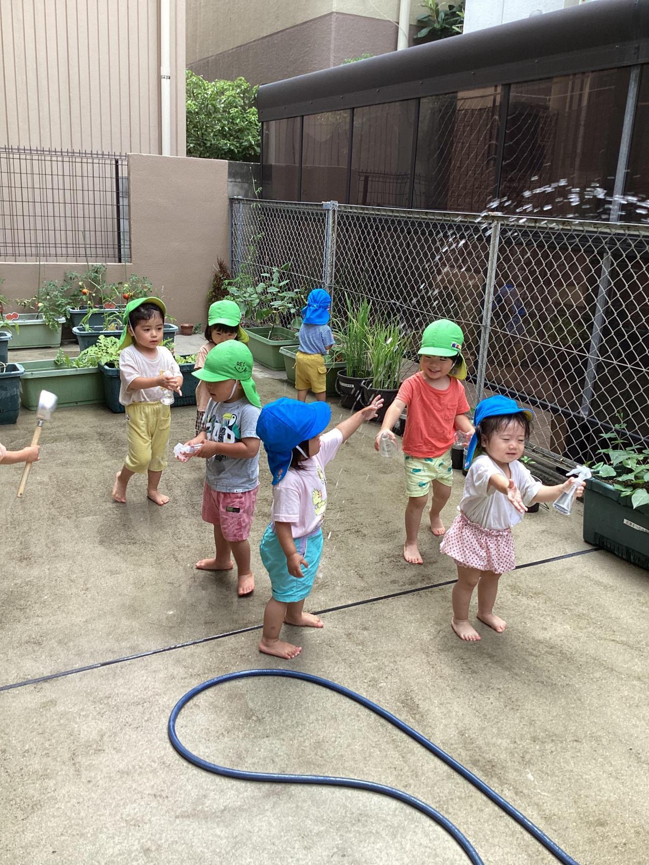 まだまだ暑い日が続きますが、子どもたちの体調と外気温に留意しながら8月も水遊びを楽しみたいと思います