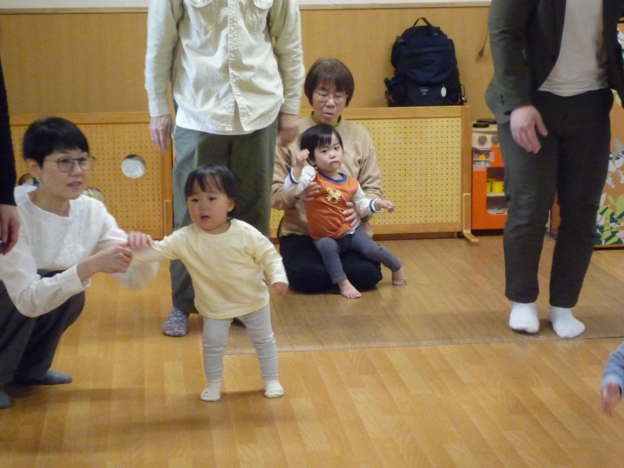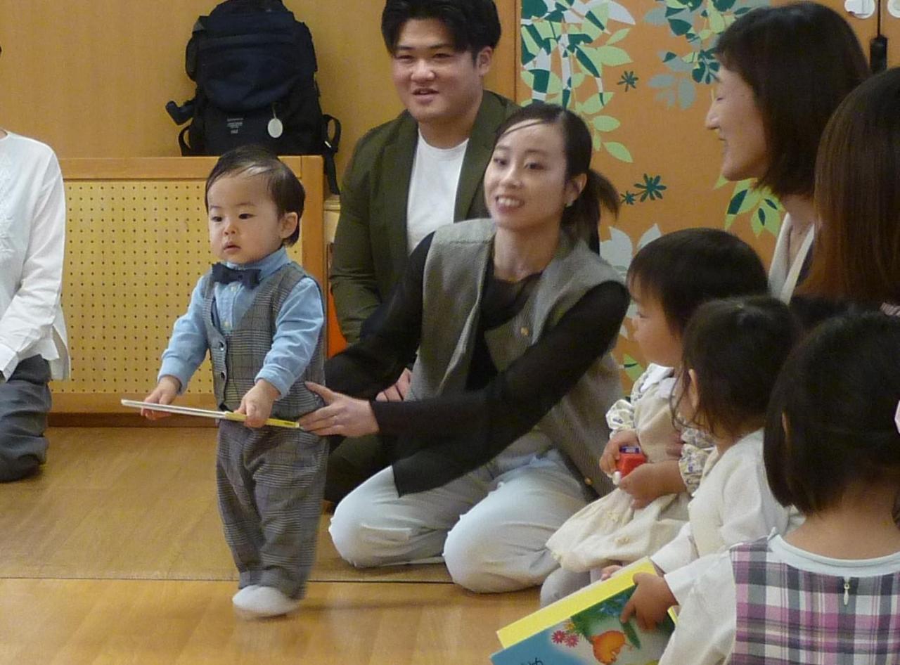 初めての保育園に少し緊張気味の子どもたちでしたが、在園児のお兄さんお姉さんと歌を歌ったり、「ガチャガチャバンド」という体操をしたりするうちにだんだん笑顔がみられましたね。