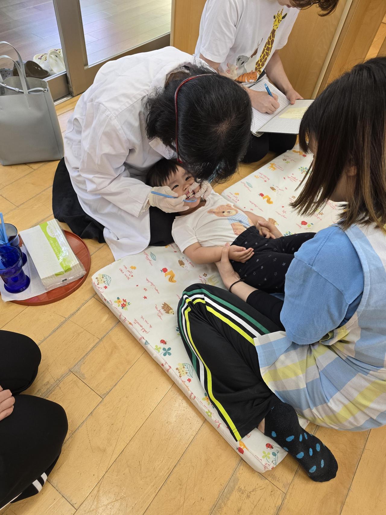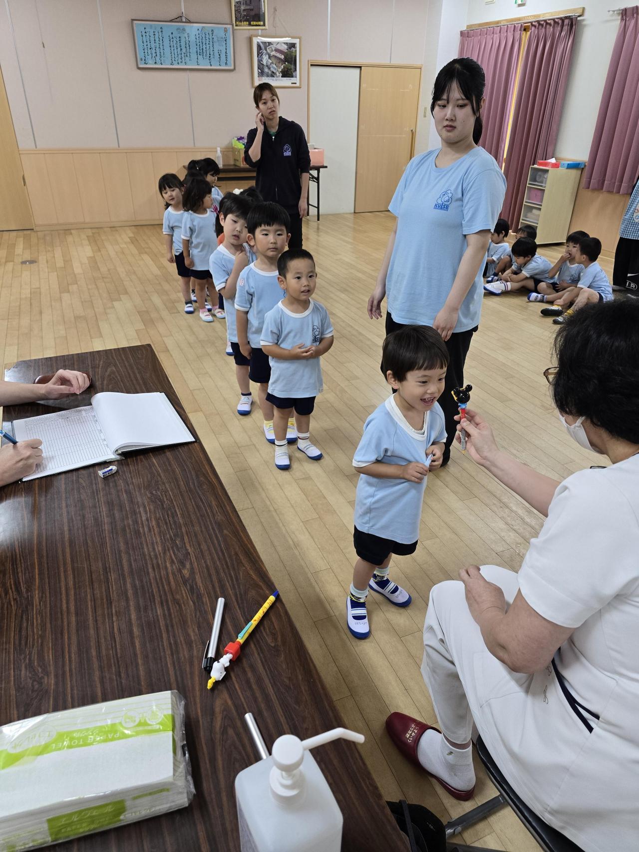 小さいクラスのお友だちは少し怖さもあり、泣いてしまう子もいましたが、みんなしっかり検診を受けれました。