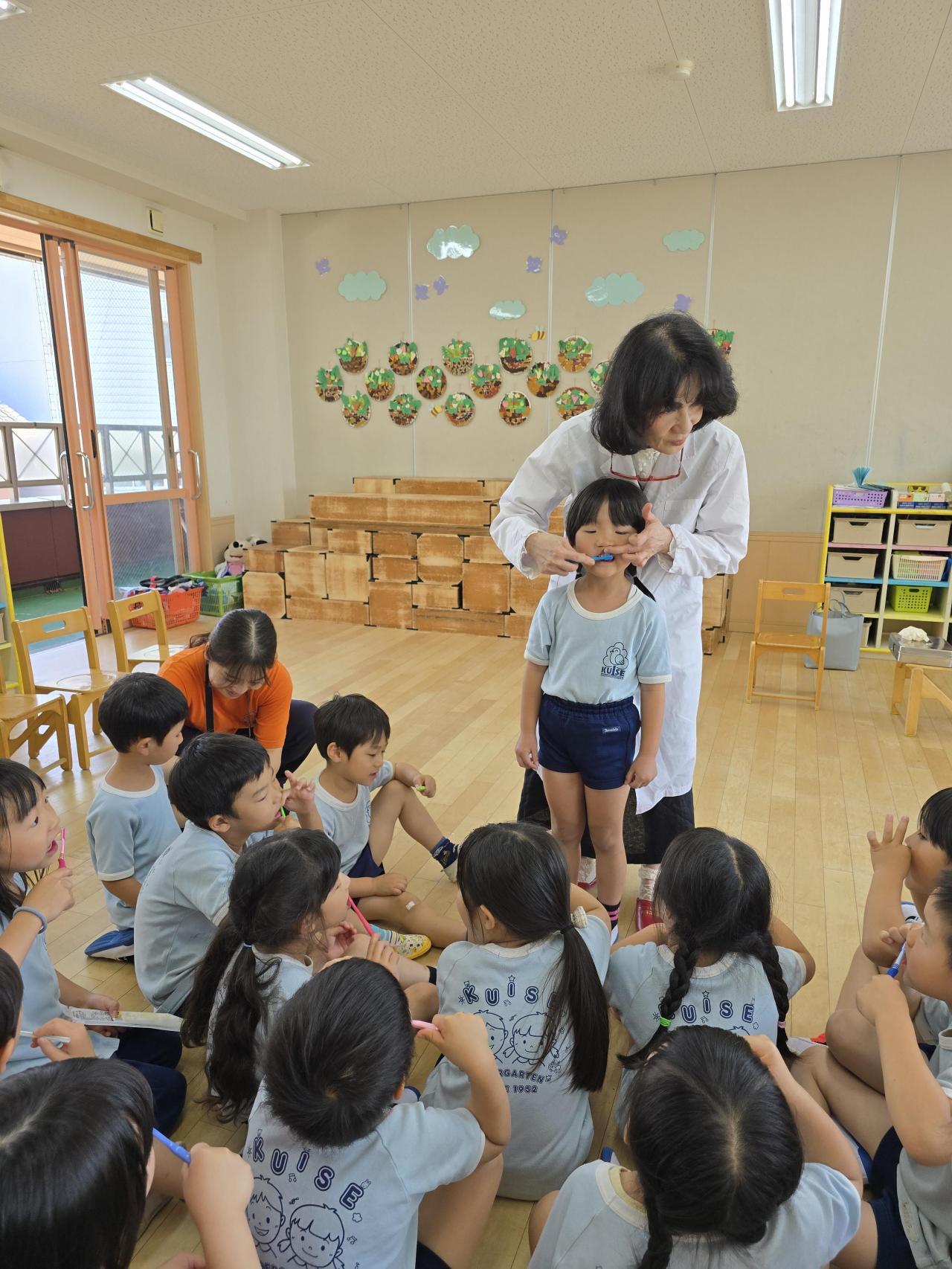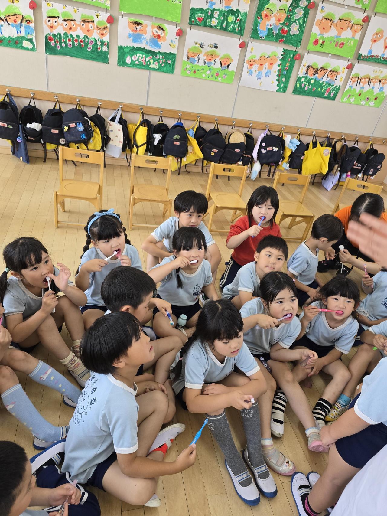 ゆめぐみさんは歯磨き指導を受けました!今日から給食後には歯磨きをします。※ゆめぐみさんはハブラシのみ毎日持ってきてくださいね。キャップは可!袋、歯みがき粉は要りません。名前も必ず書いてくださいね!