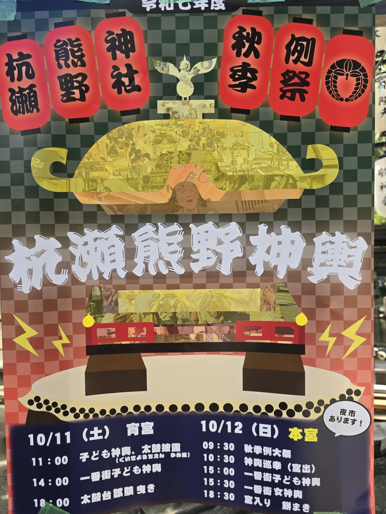 日曜日(本宮)は9時30分より例大祭があり、その後は杭瀬中を神輿が巡幸します。この日も午後3時~子ども神輿があります。誰でも参加できます!お待ちしております。続いて女神輿があります。女性だけで担ぎます!お母さん達お待ちしております。もちろんお父さんも参加できます!皆様で楽しんで頂ければと思います!