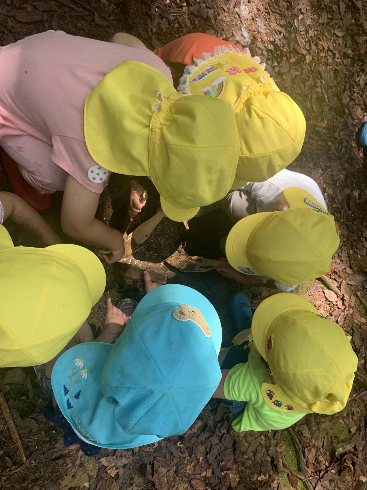「おっきなカニやー!!」「カニ可愛いね♡」「水が冷たくて気持ち良いね!」「土粘土面白い!」とそれぞれ好きな遊びを見つけて、とっても楽しんでいました🎶
