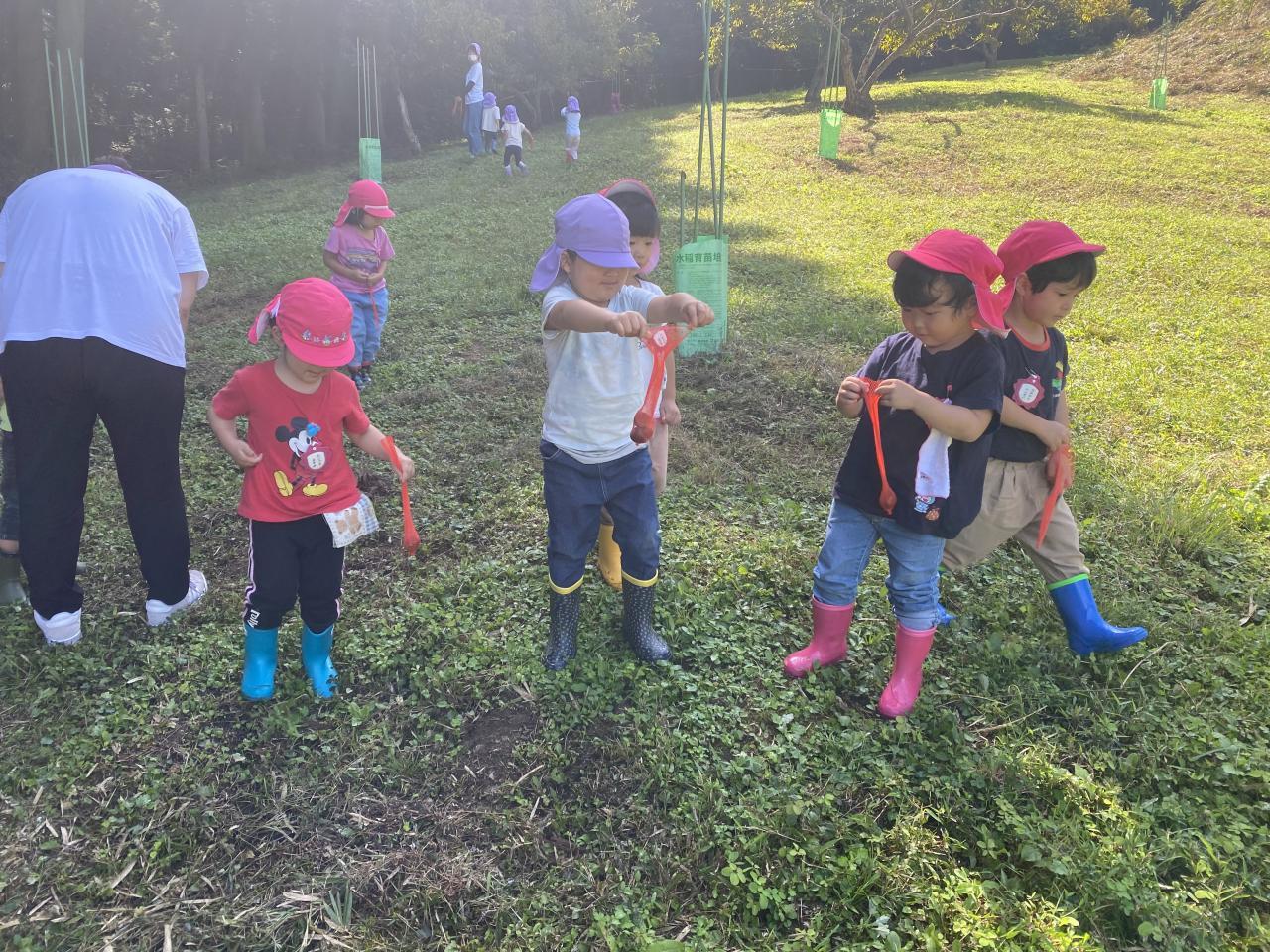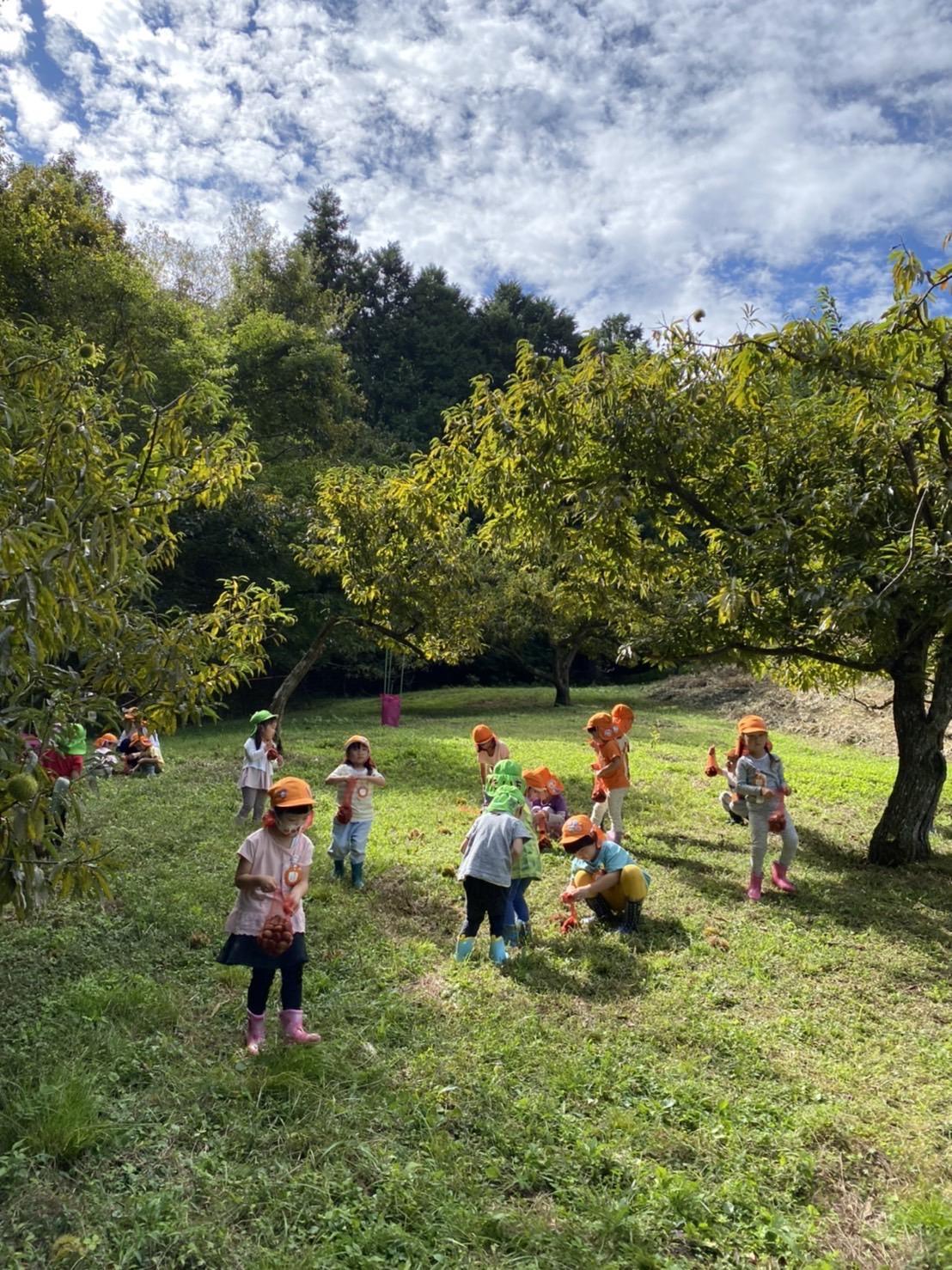 9月26日(月)にりす組・うさぎ組、29日(木)にこぐま組・こじか組が栗拾い遠足に行ってきました☀️子ども達は朝から「長靴はいてきたよ!」「お菓子持ってきたよ!」とウキウキした様子で登園してきました🥰