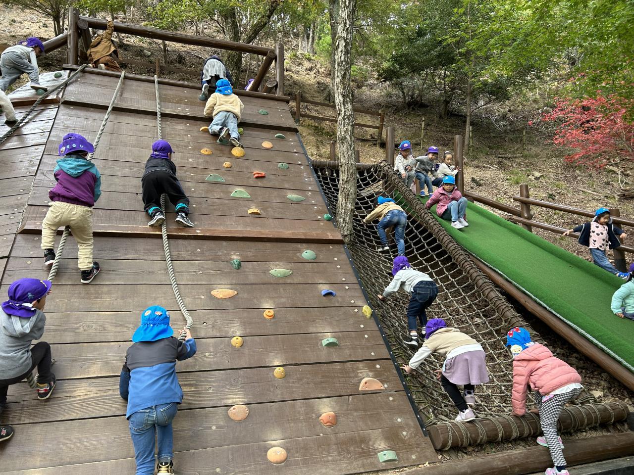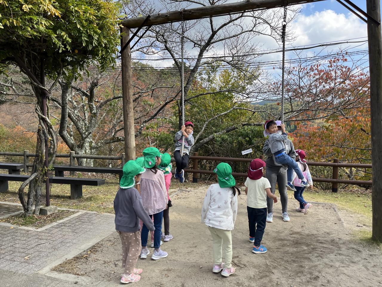 その後広場でおにぎりとおやつを食べてアスレチックや色々な遊具で遊びました🍙