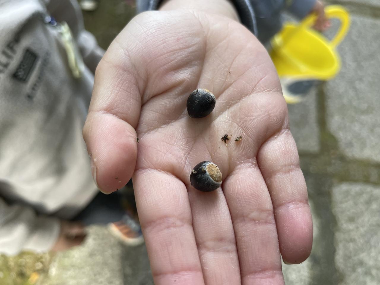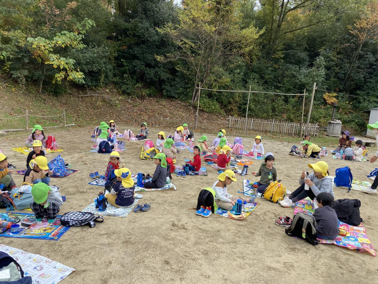 たくさん木の実や葉っぱを拾った後は、みんなでお弁当を食べて元気いっぱいに遊びました😄