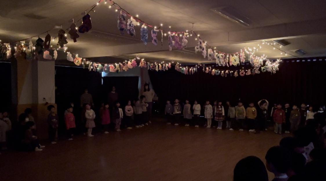 ホールには一人ひとりが一生懸命作ったオーナメントが飾られていて、みんなで心を落ち着けて優しい気持ちで見つめました😌💗