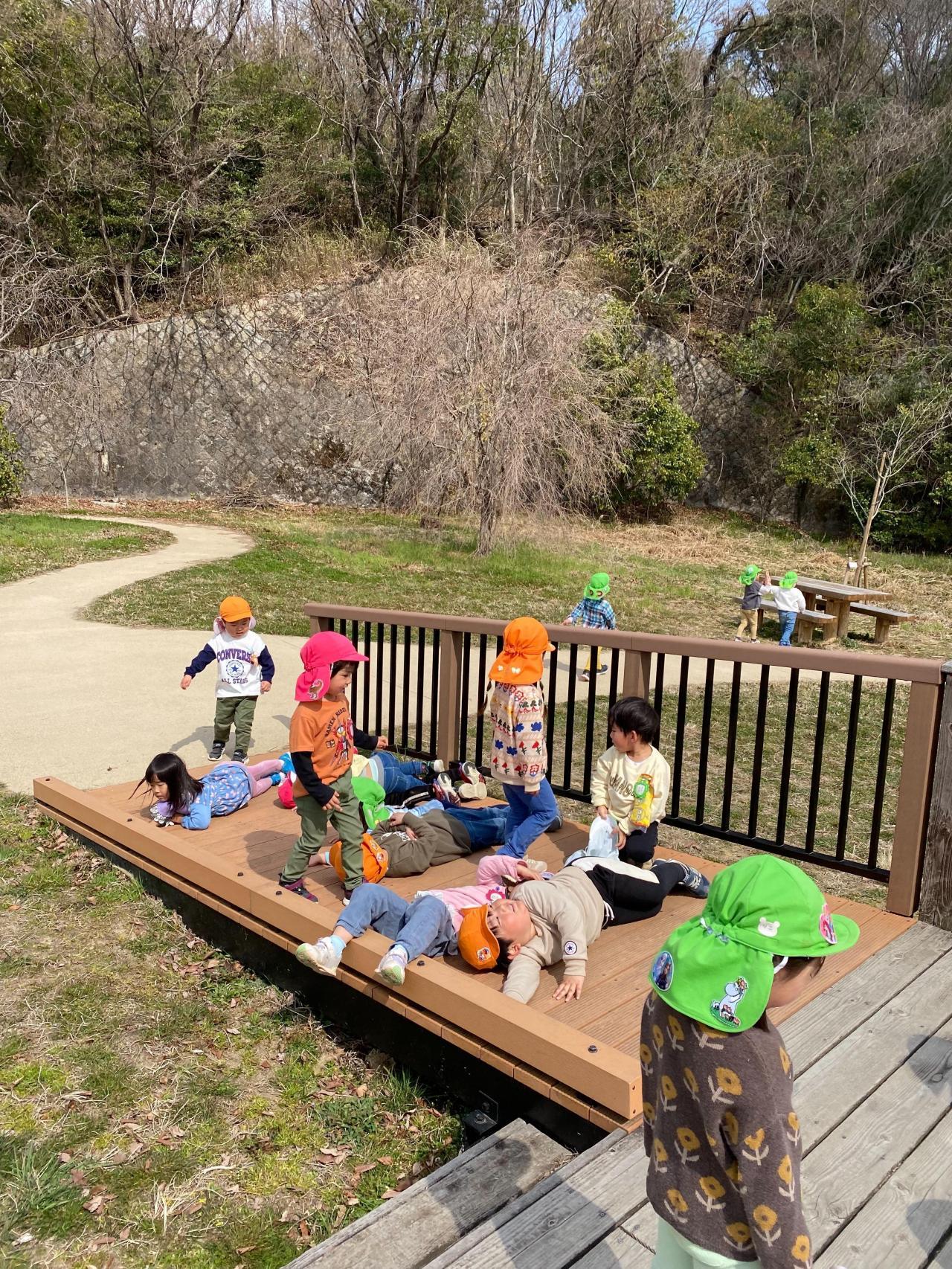 みはらし広場ではウッドデッキから景色を見たりお友達と寝転んだりしていました☺️