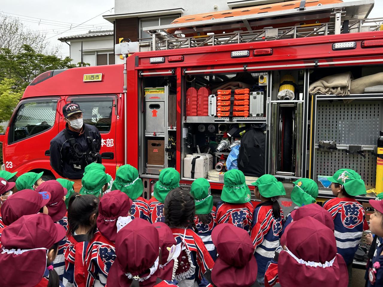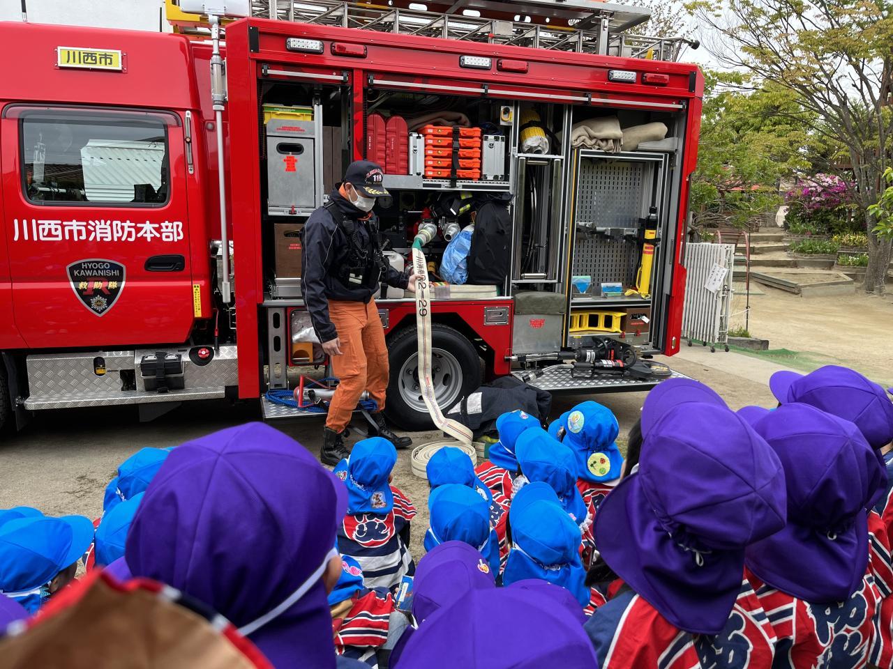 初めて見る消防車の設備や消防服に、子ども達はとても嬉しそうに目を輝かせている様子でした👀✨