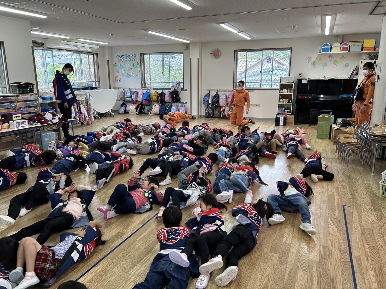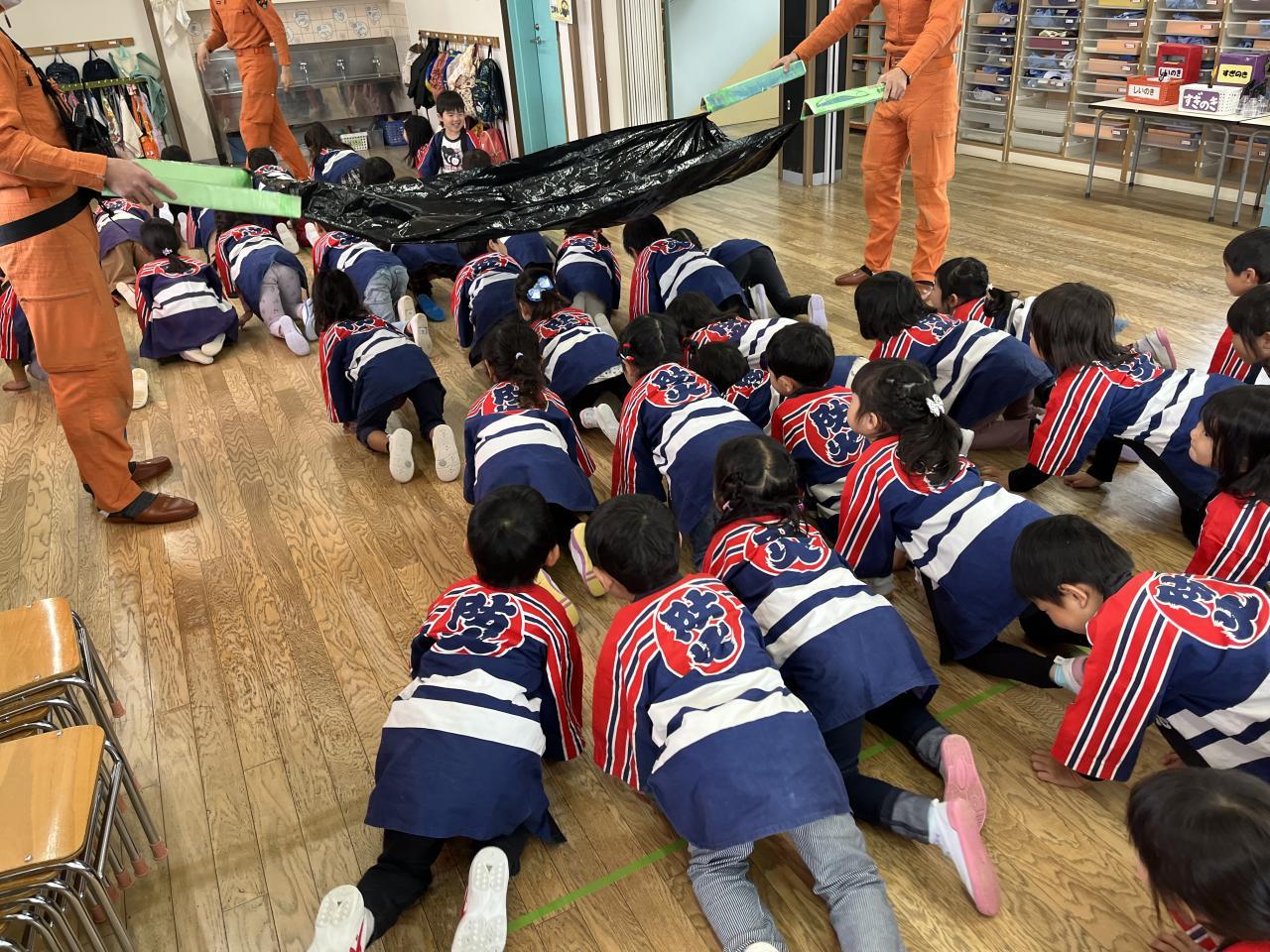 また、消防士さんの寸劇を見て、実際に体を動かしながら防火体験をしました🎶