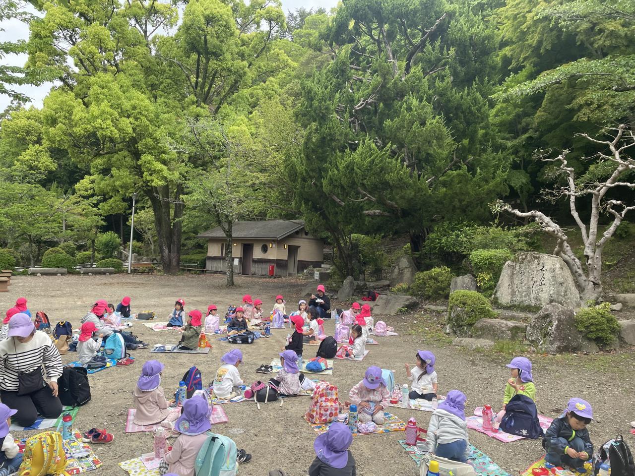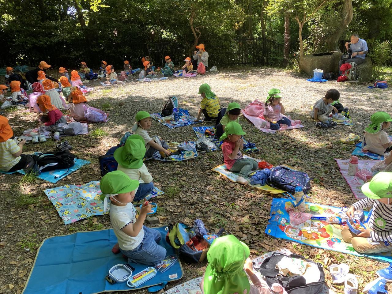 待ちに待ったお弁当の時間です💖シートを広げてみんな嬉しそうな顔でお弁当とおやつを食べていました🥰
