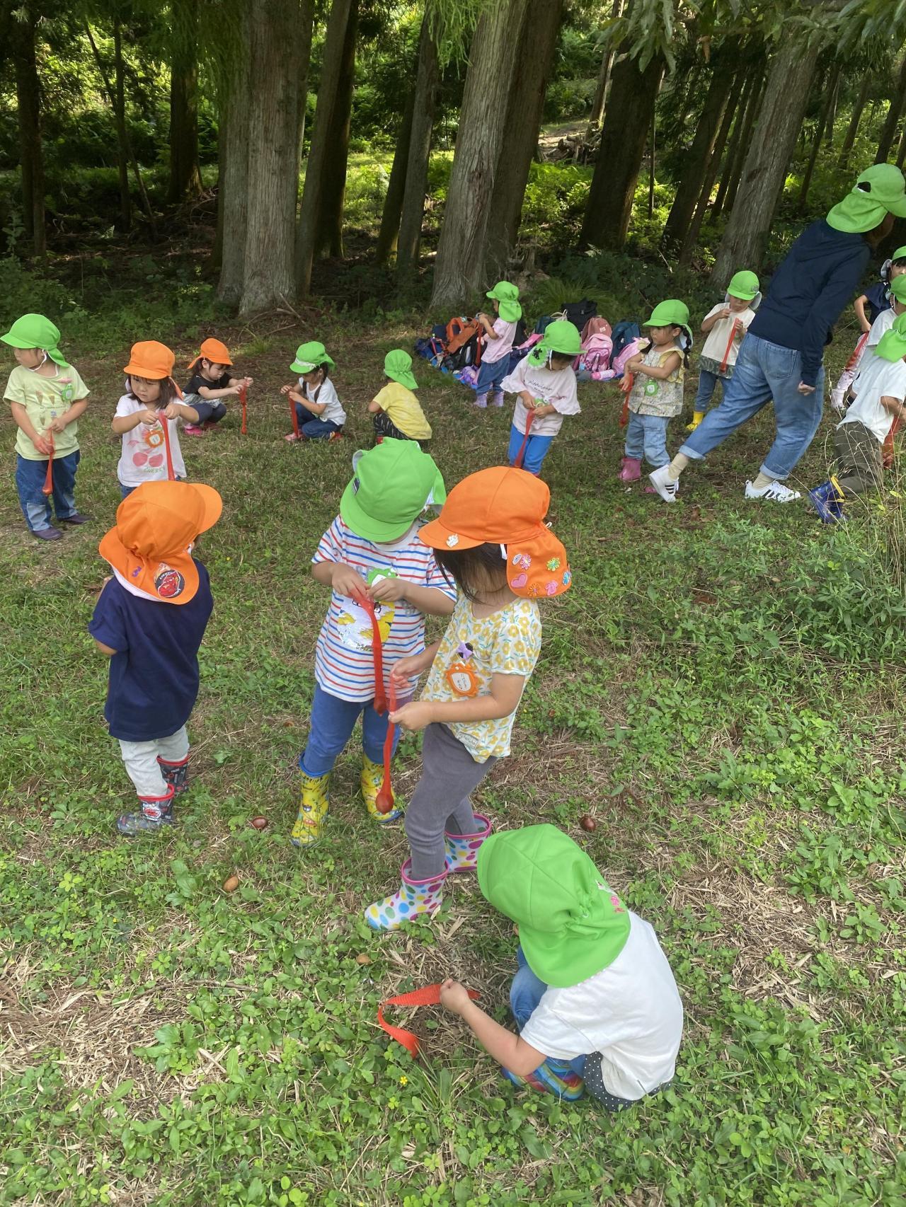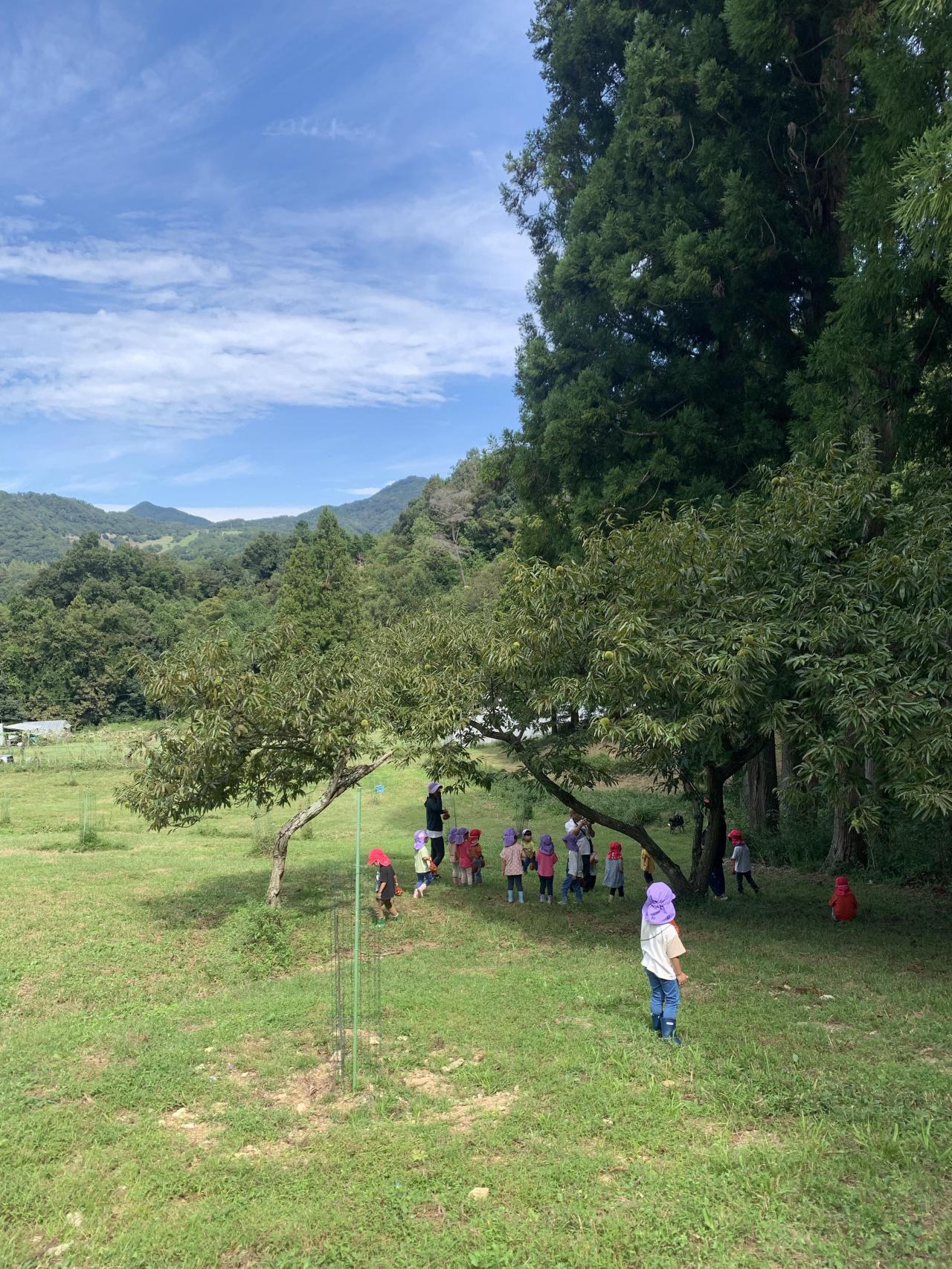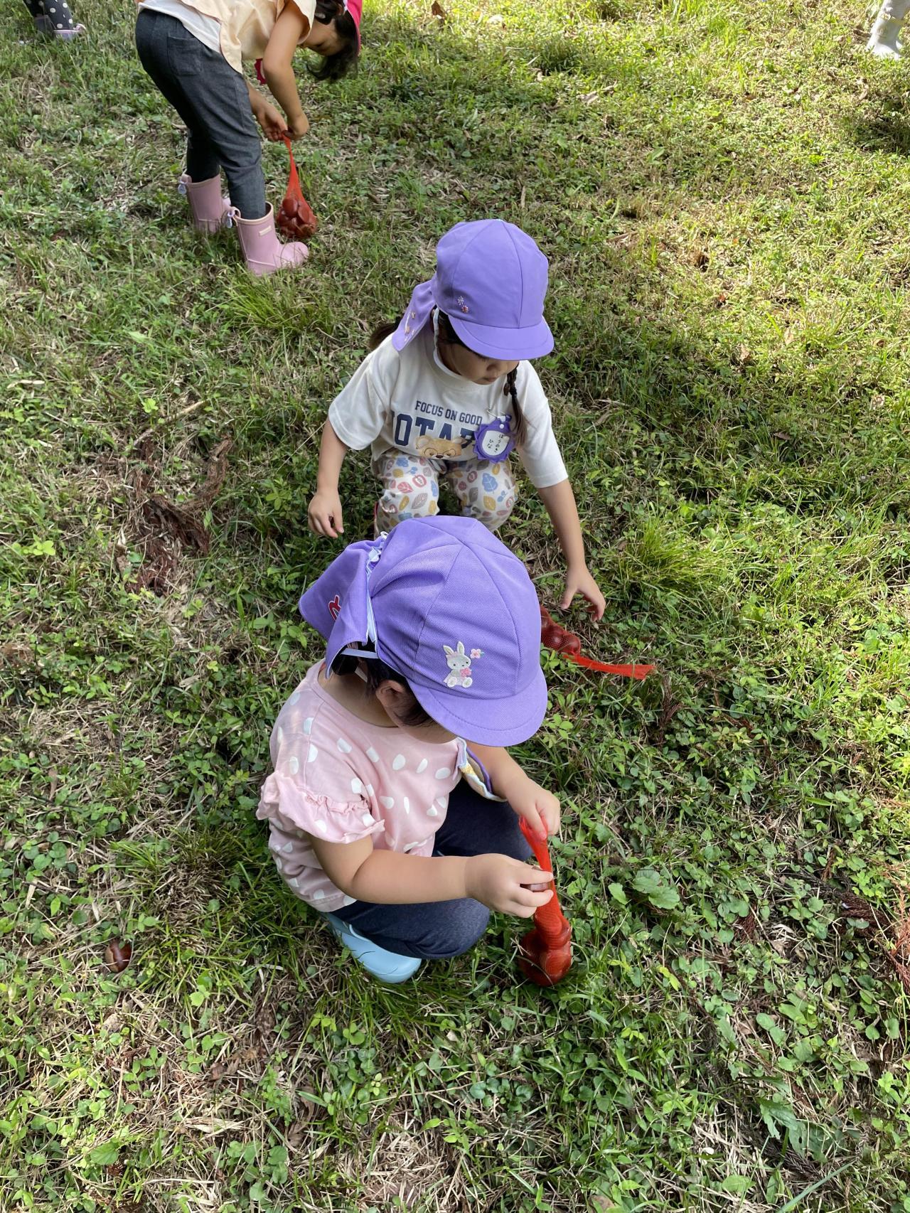9月25日(月)にりす組•うさぎ組、28日(木)にこじか組•こぐま組で栗拾い遠足に行ってきました🔆