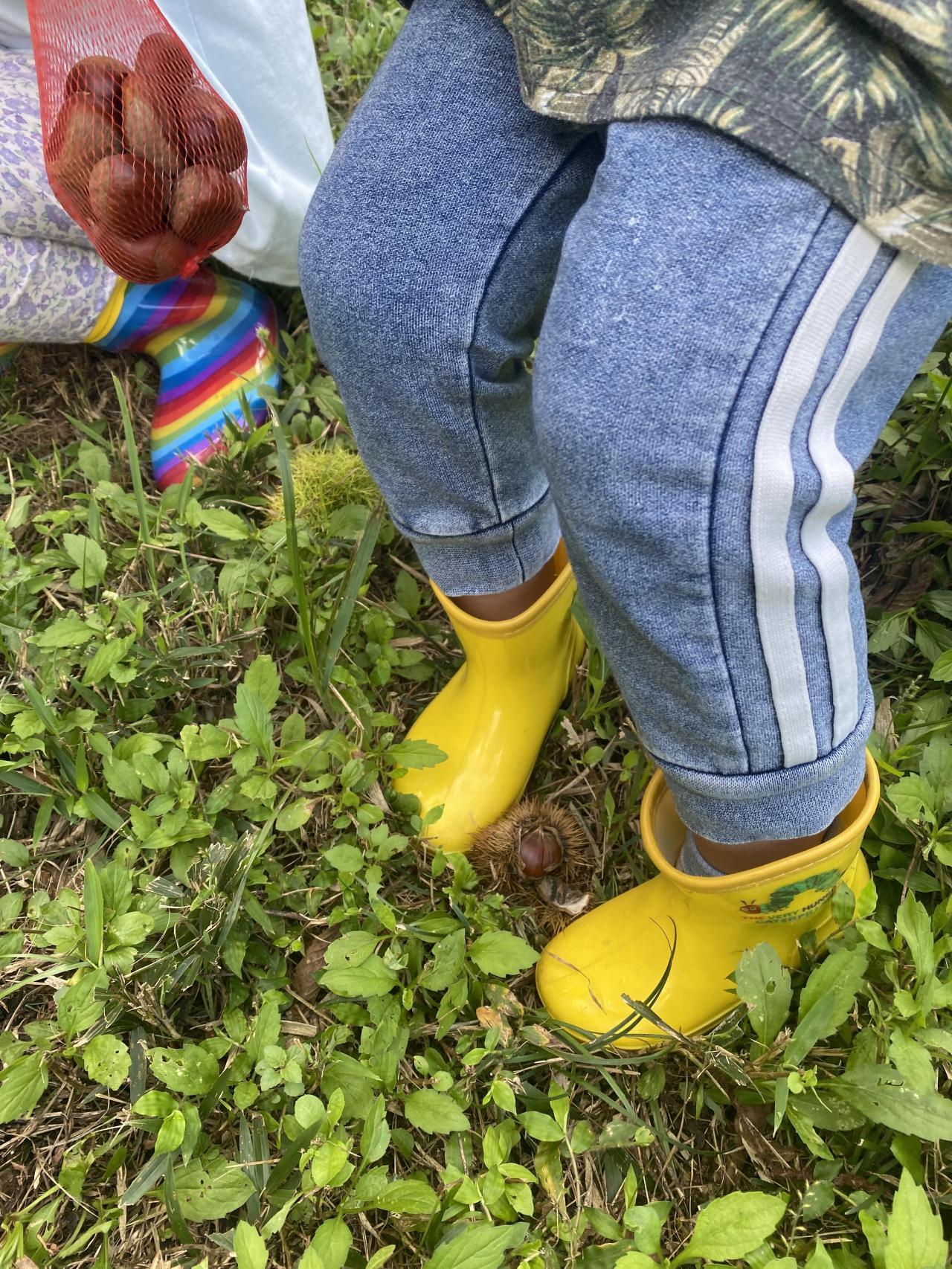 足で上手く栗のイガを踏んで栗を拾っている子どももいました💫