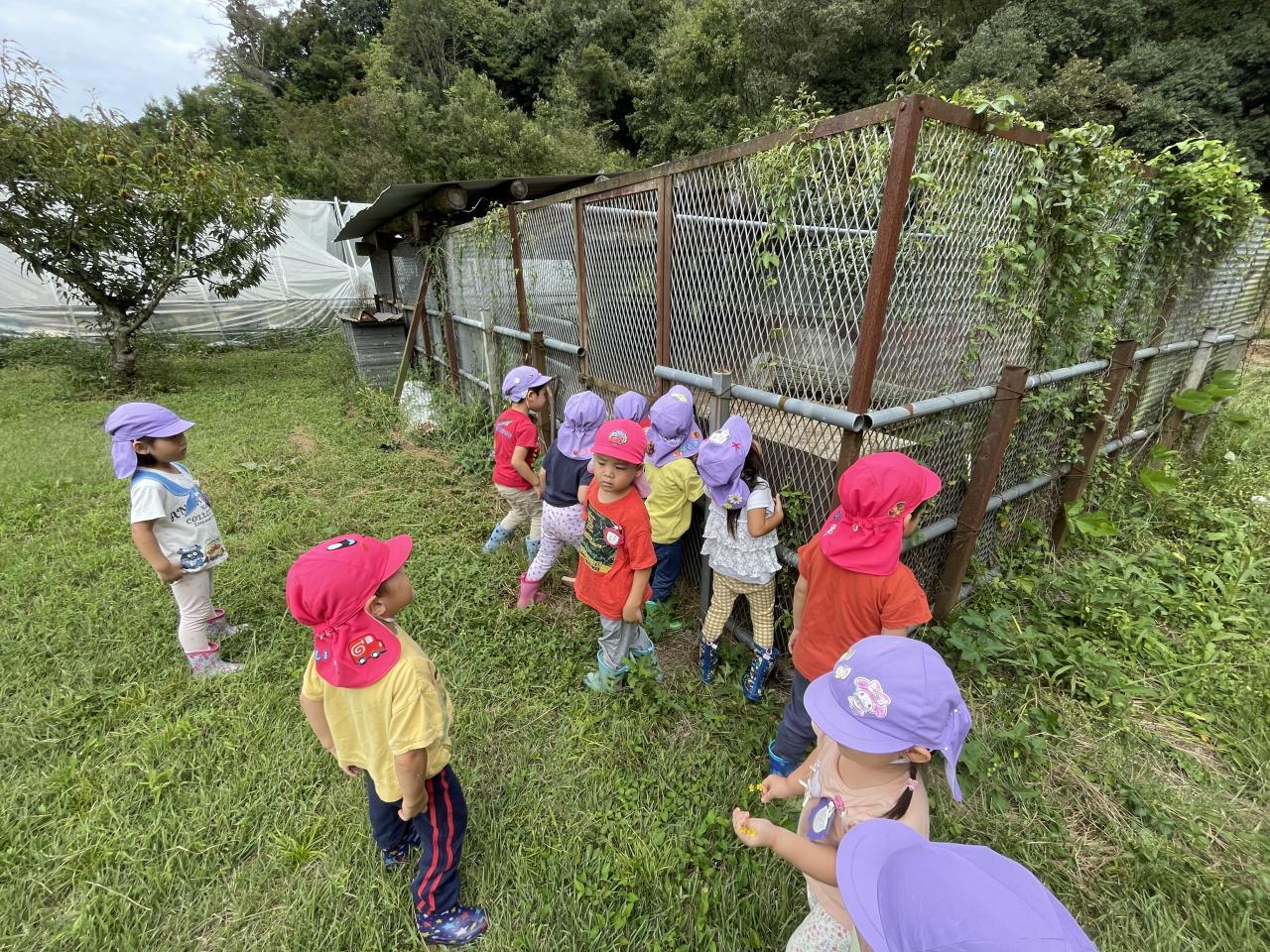 おやつを食べて少し遊ぶとあっという間に帰る時間🚌最後は栗園で飼育しているイノシシを見て幼稚園に帰りました🐗