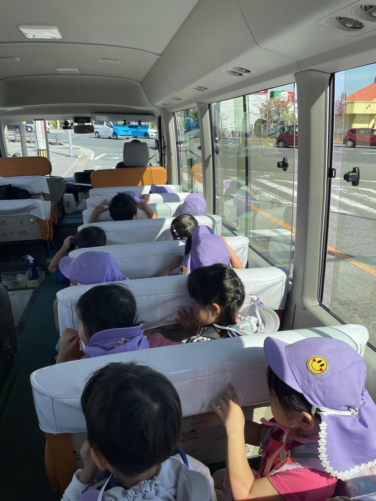 幼稚園バスに乗って栗園へいざ出発‼️道の途中では馬を見ることができて大興奮でした🐴✨