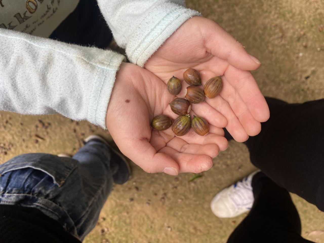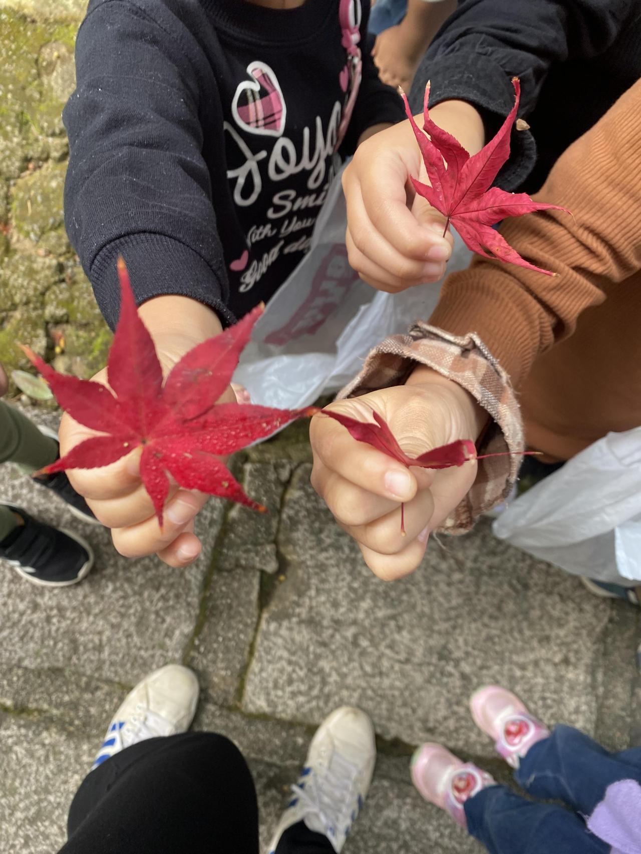 満願寺に到着すると沢山落ちているしいの実やどんぐり、もみじなどに目を輝かせて沢山拾っていました💫