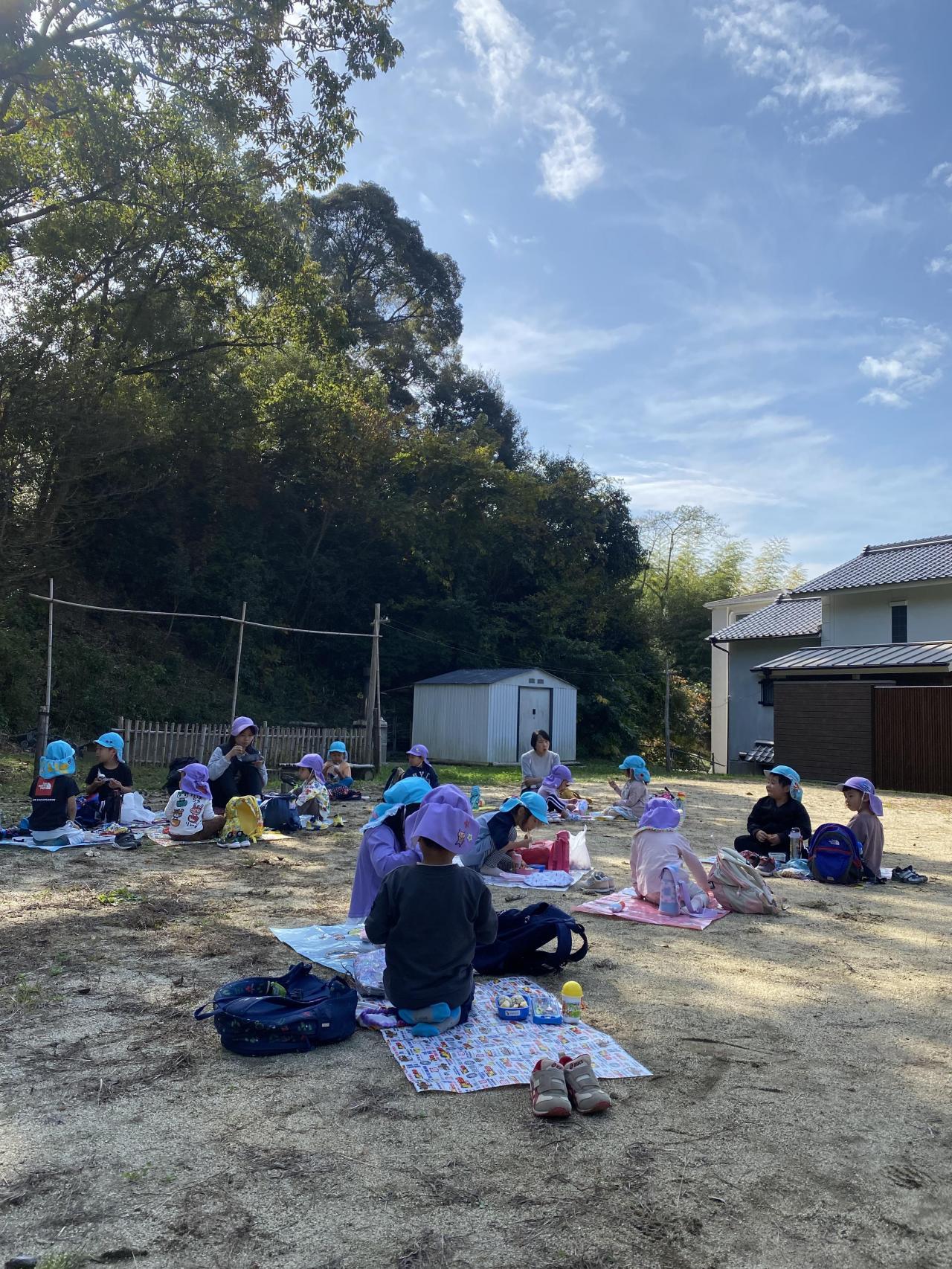 少し照れながら年中組がナースリーに声を掛けて誘い一緒にシートを広げてお弁当を食べました😋💖