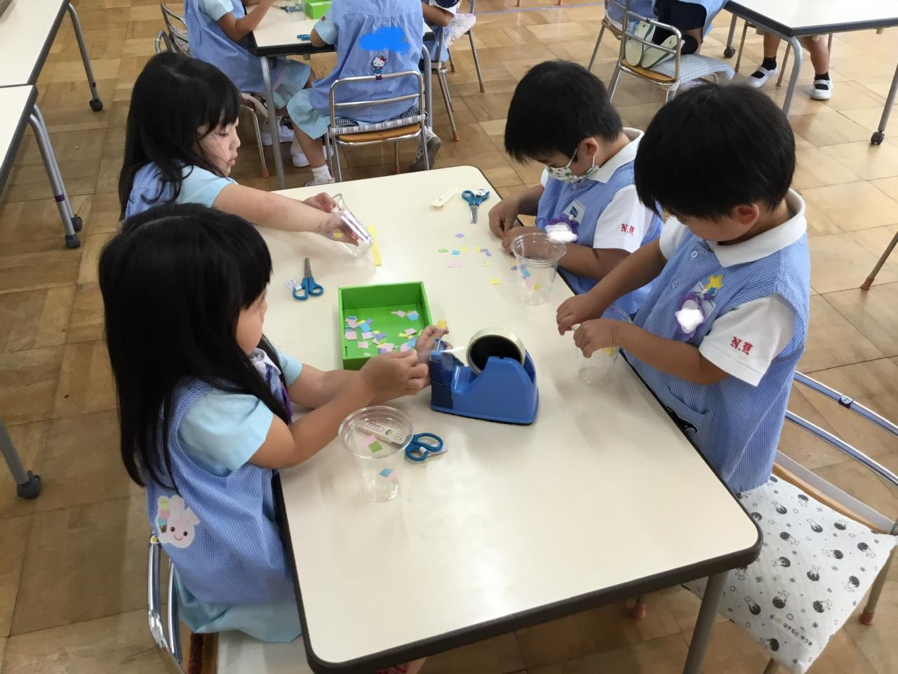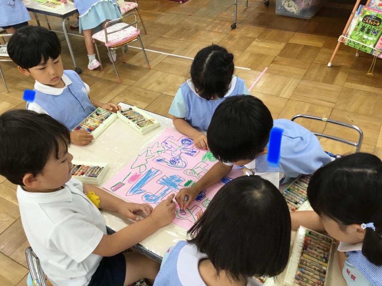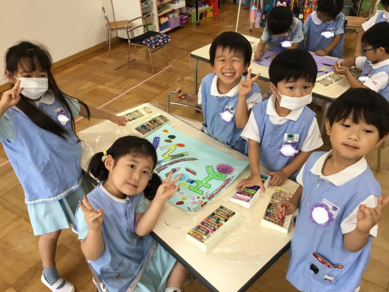 1学期末のお楽しみとして、年中組合同で『お祭りごっこ・お店屋さんごっこ』を行います!5月頃からコツコツ準備を進めてきました♪
