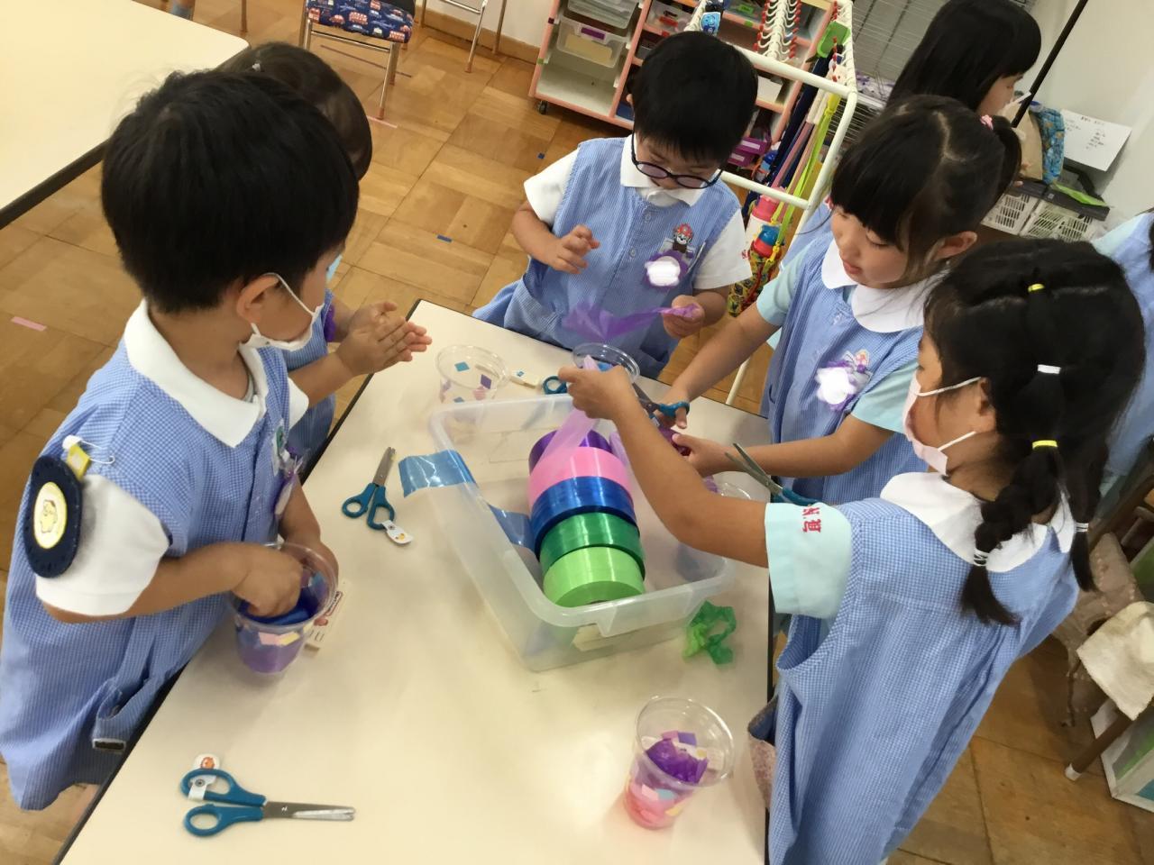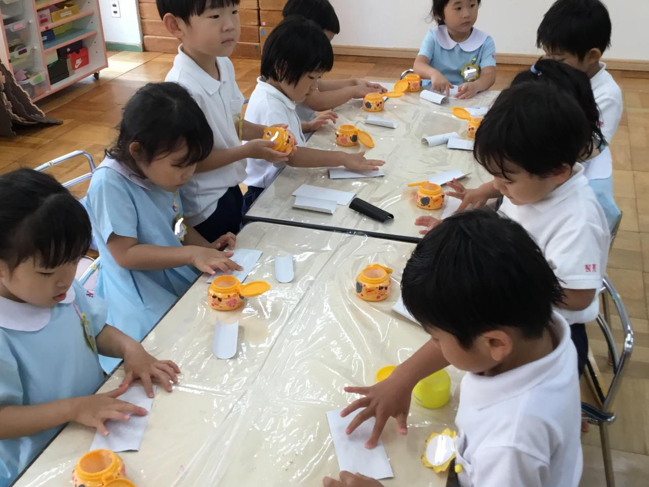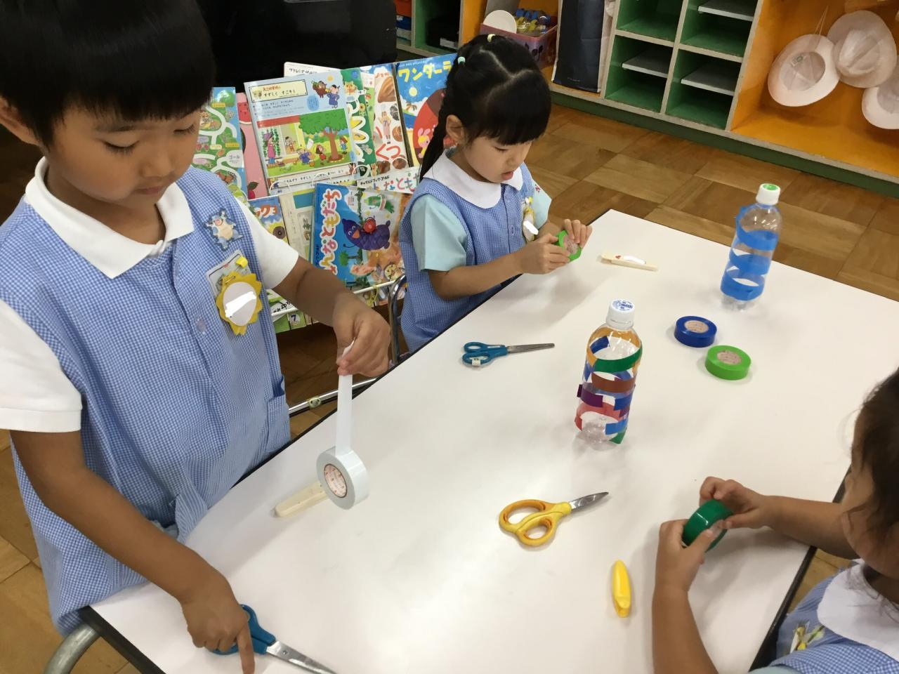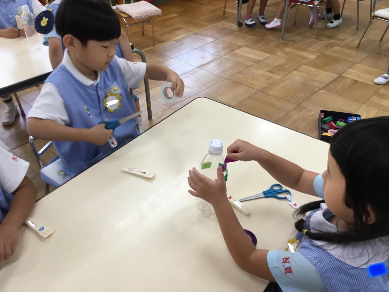 1学期末のお楽しみとして、年中組合同で『お祭りごっこ・お店屋さんごっこ』を行います!5月頃からコツコツ準備を進めてきました♪