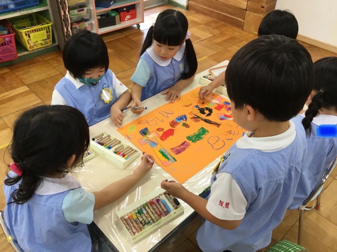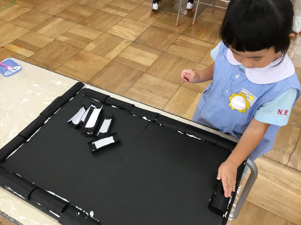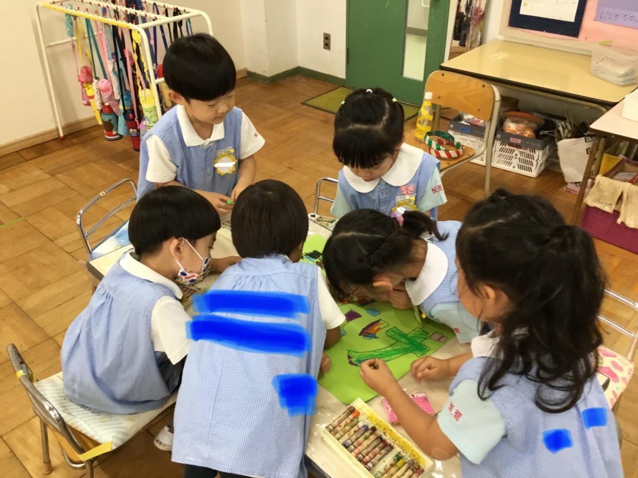 【お店の看板作り】グループの友だちと、役割分担して色を塗りました!