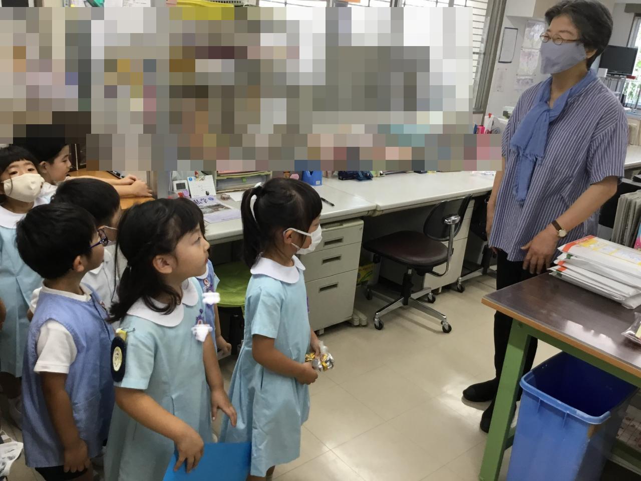 【他学年との交流】お店屋さんには他学年の友だちや職員室の先生が、お客さんとして来てくれます!メニューを渡しにいきました。