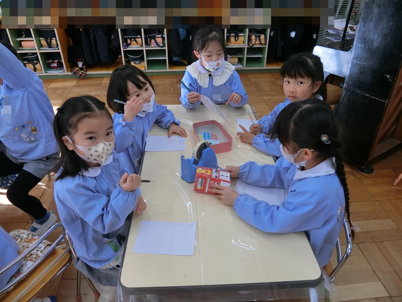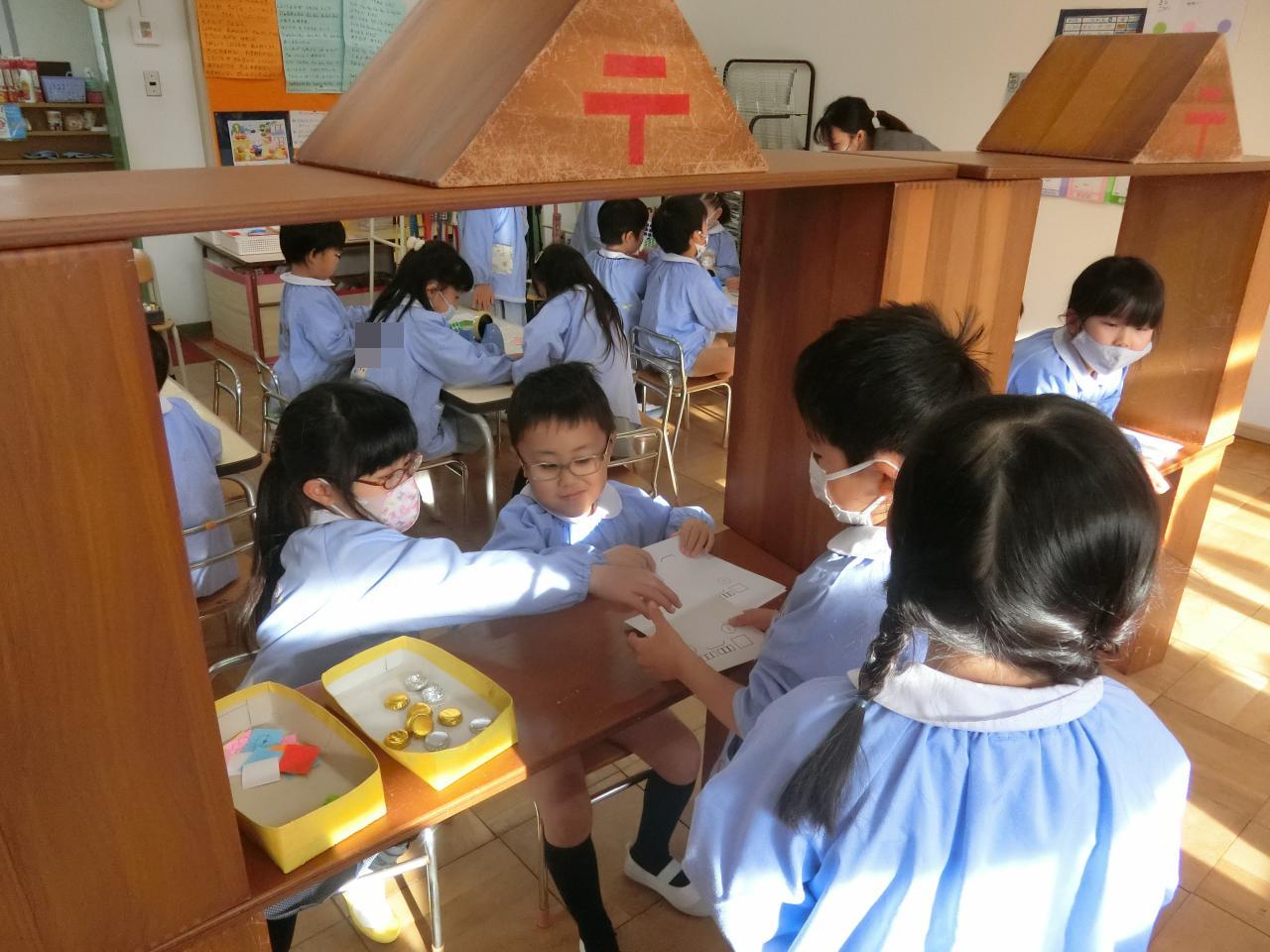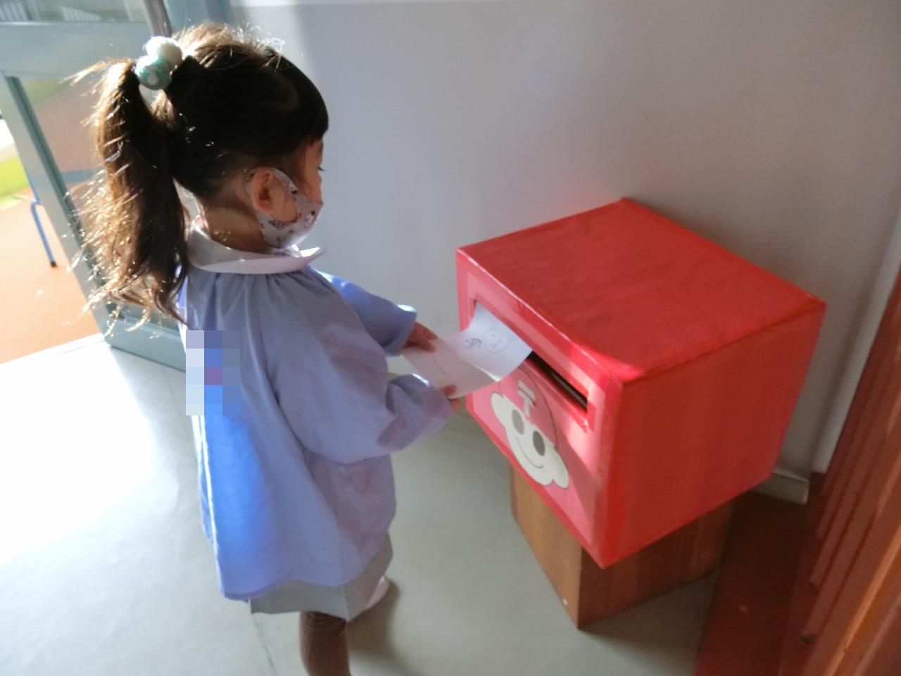 郵便局は、年長組のお仕事☆ 今日は、ばら組の担当。