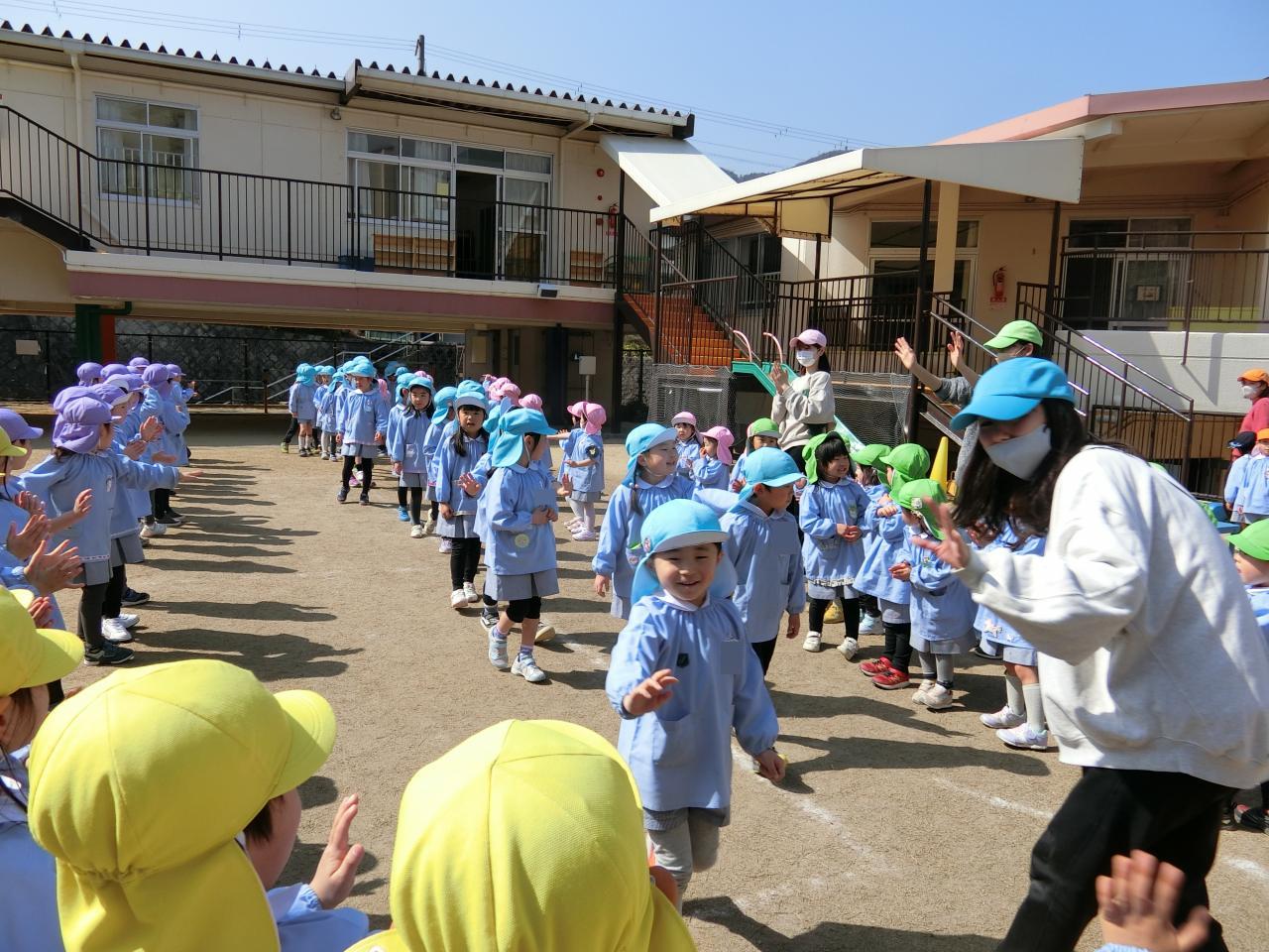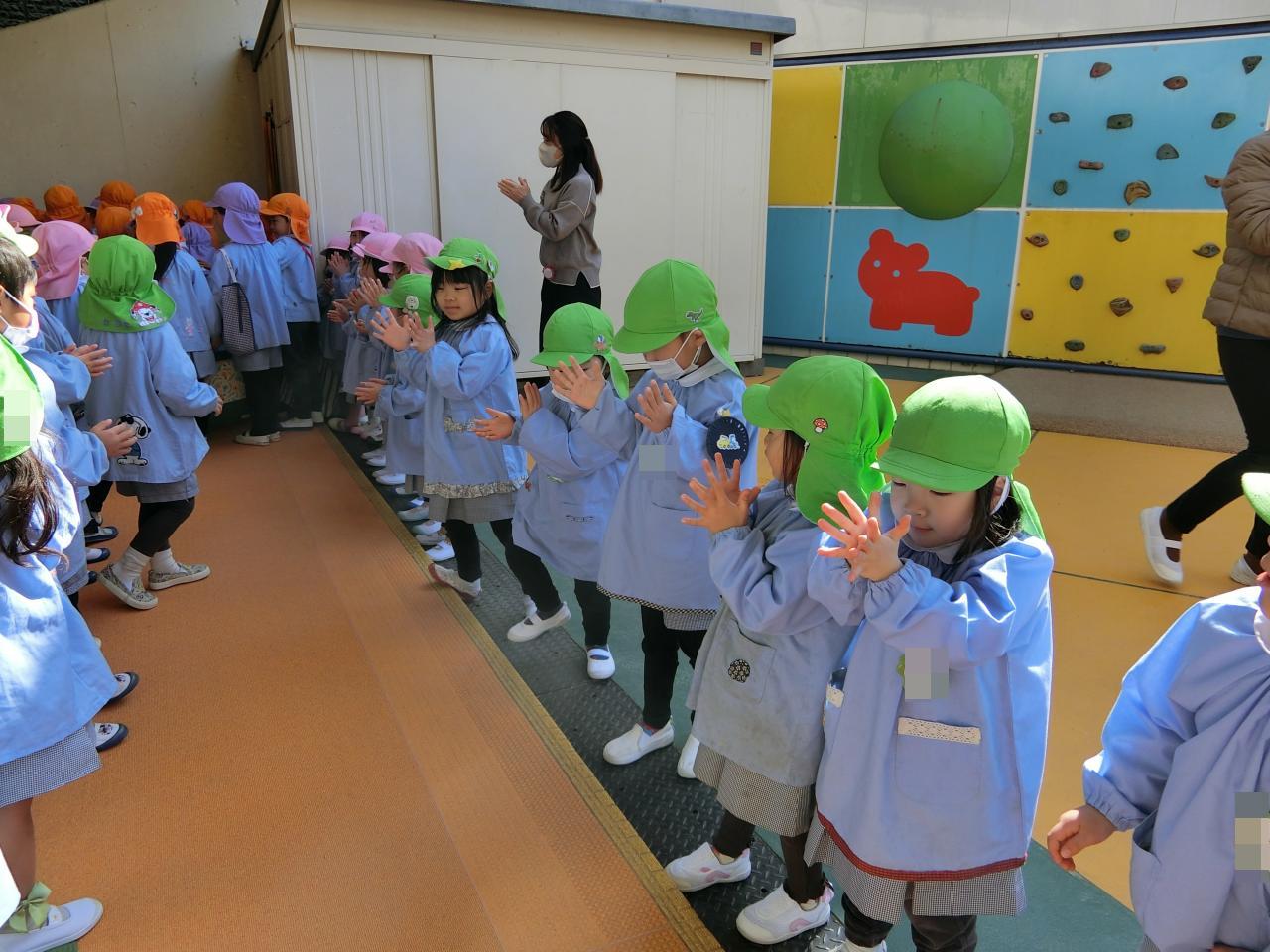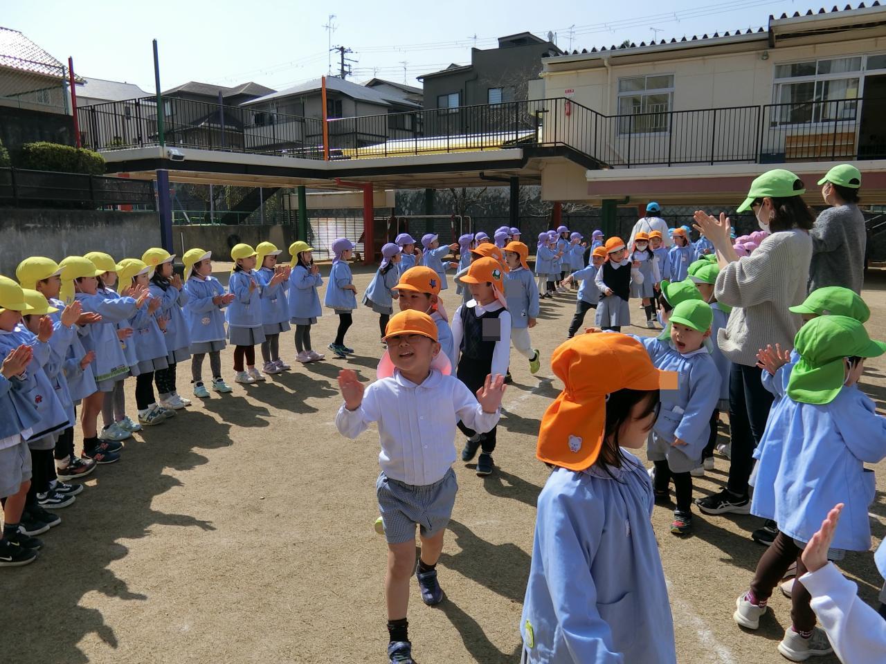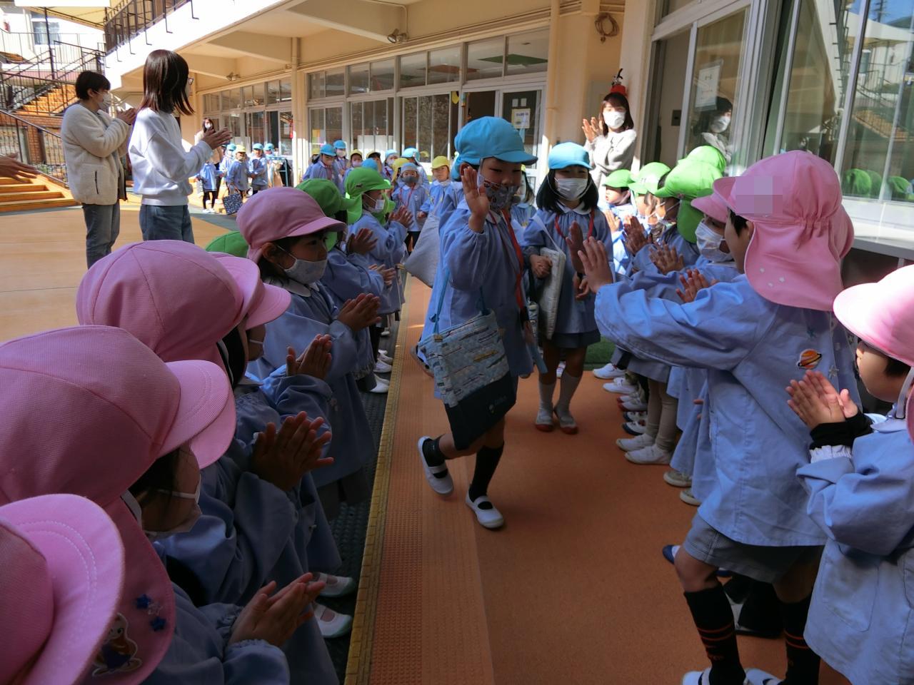 最後にもう一度集まり、みんなで花道を作って、年長さんを送りました♪