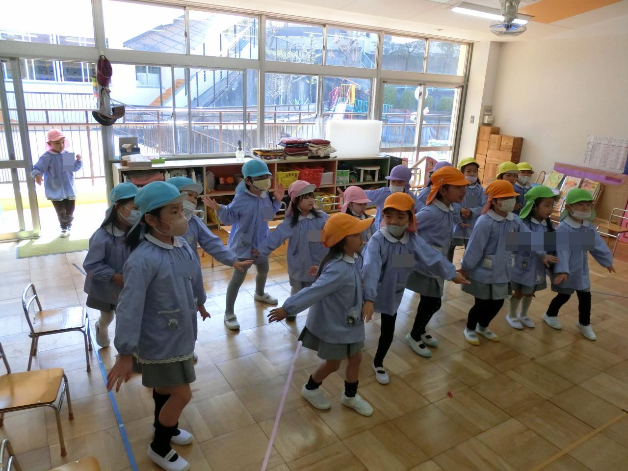 ホールでの集いの後は、全クラスを7クラスに分け、異年齢での交流の時間を楽しみました♪