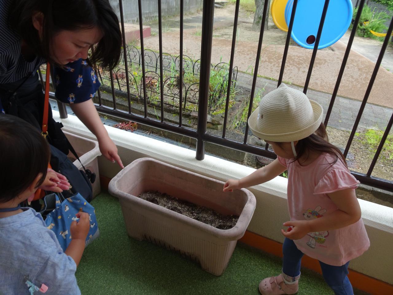 帰る前にテラスで『綿』の種まきをしました。