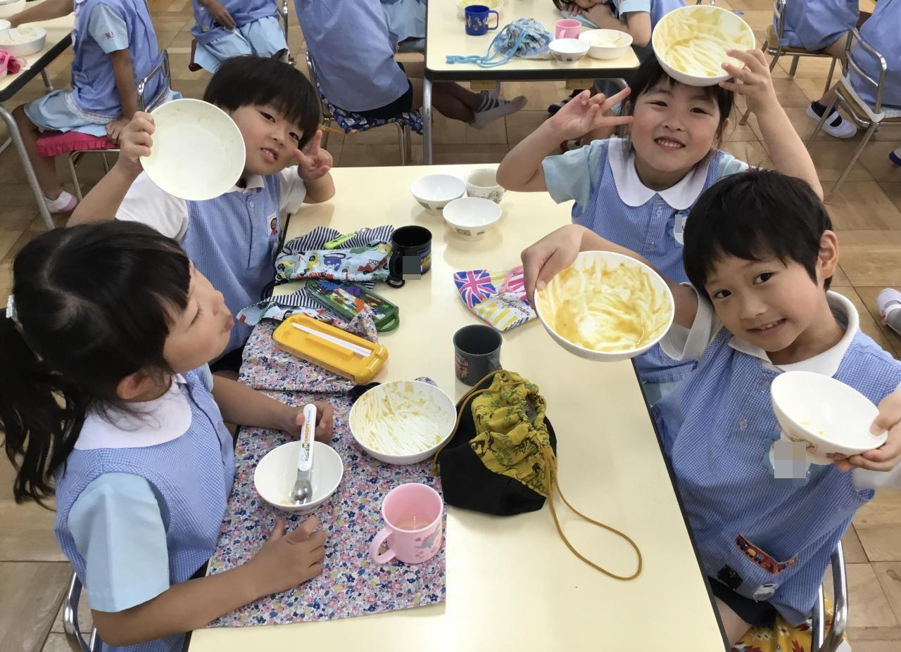 学年ごとに育てている夏の野菜も元気に育って、そろそろ収穫の時期になりました。次は、年中さんと年少さんもクラスでクッキングするみたいです。お楽しみに♪