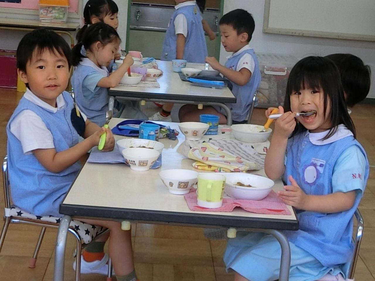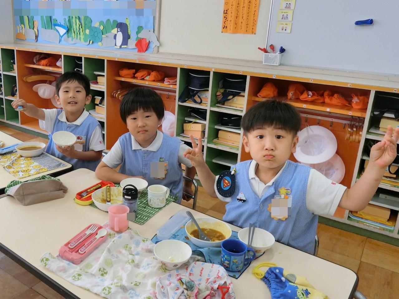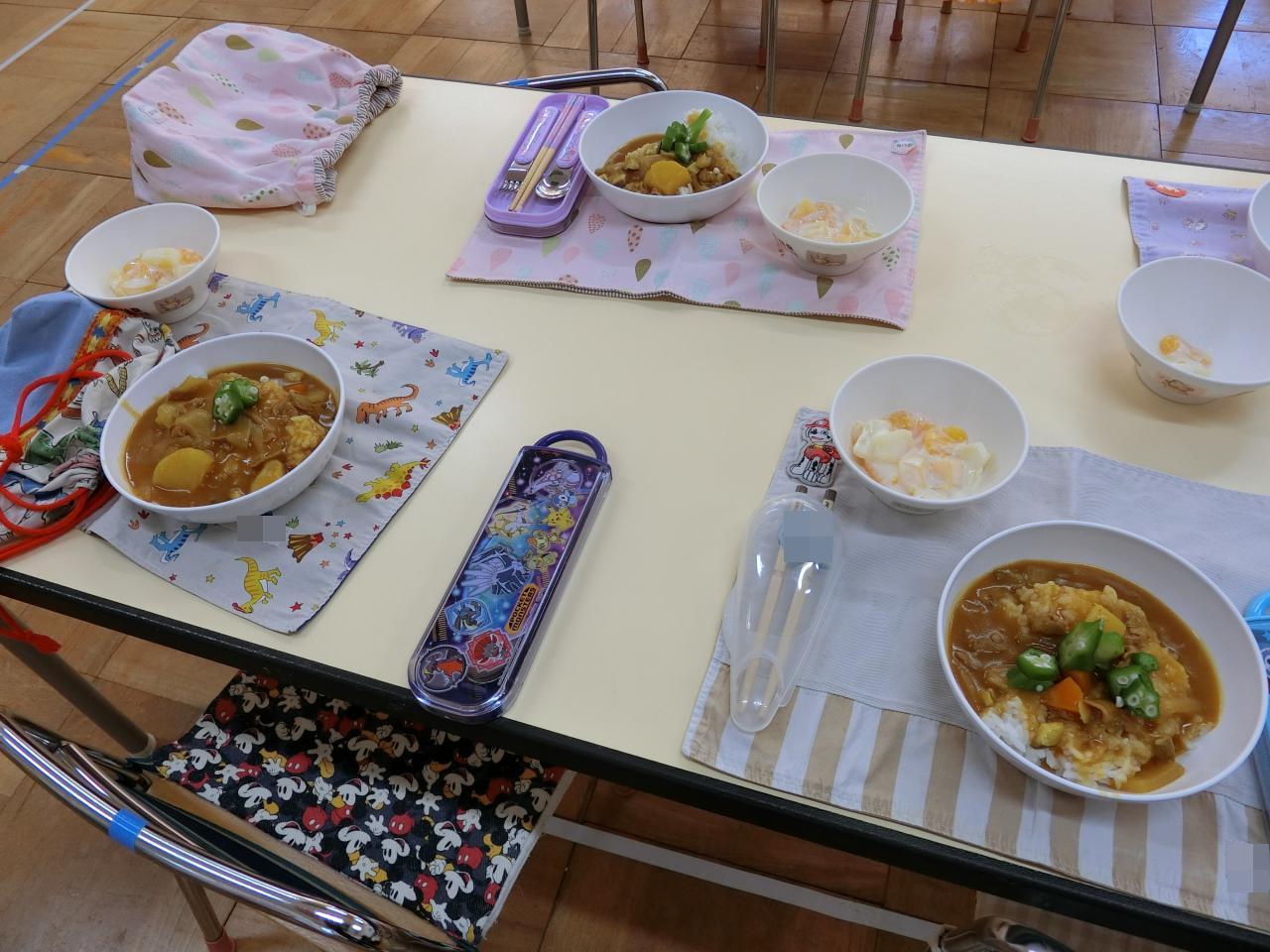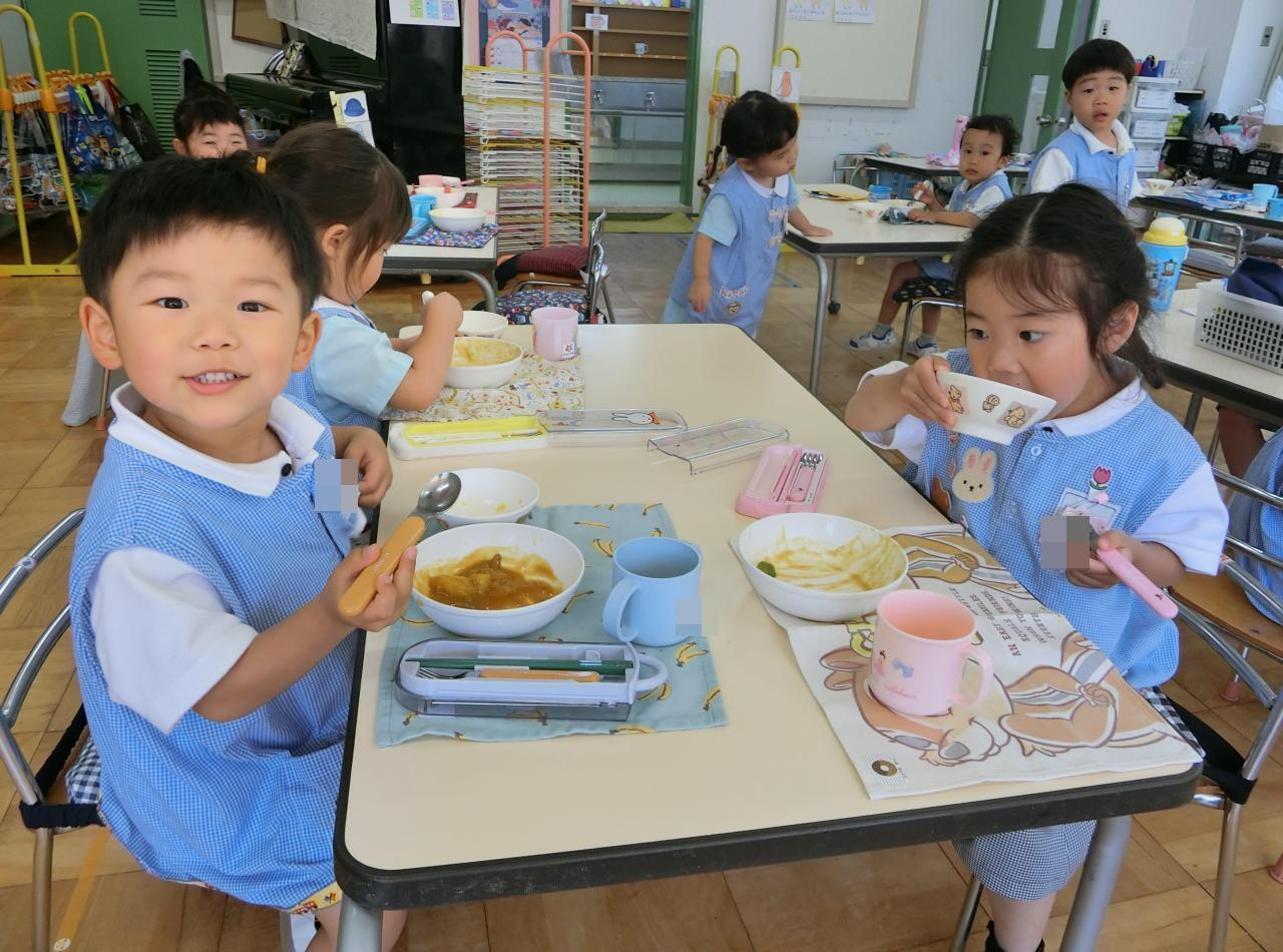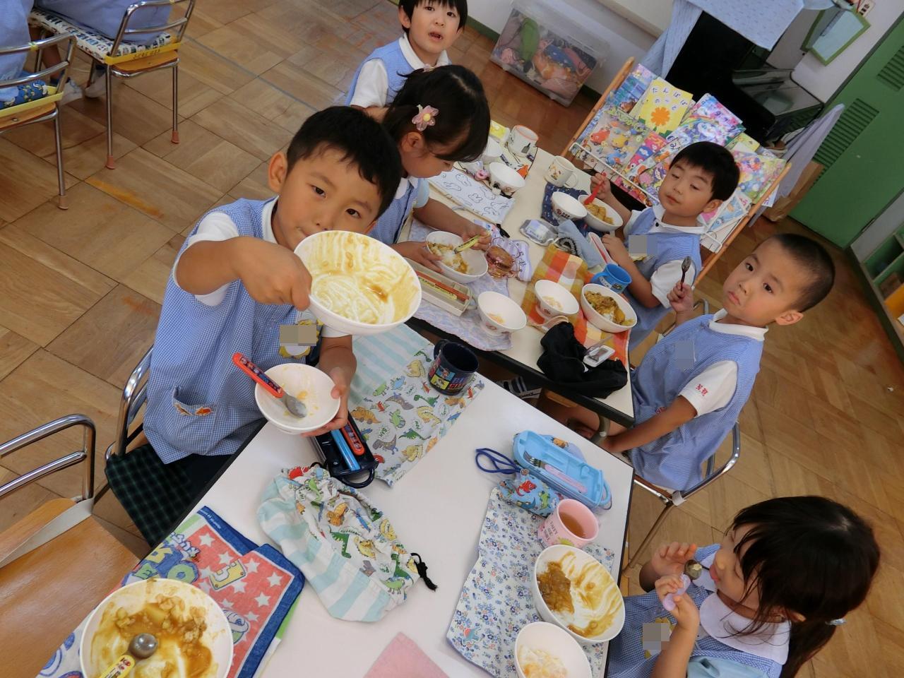 翌日、年長さんが切った野菜を調理師さんがカレーに仕上げてくださいました😋