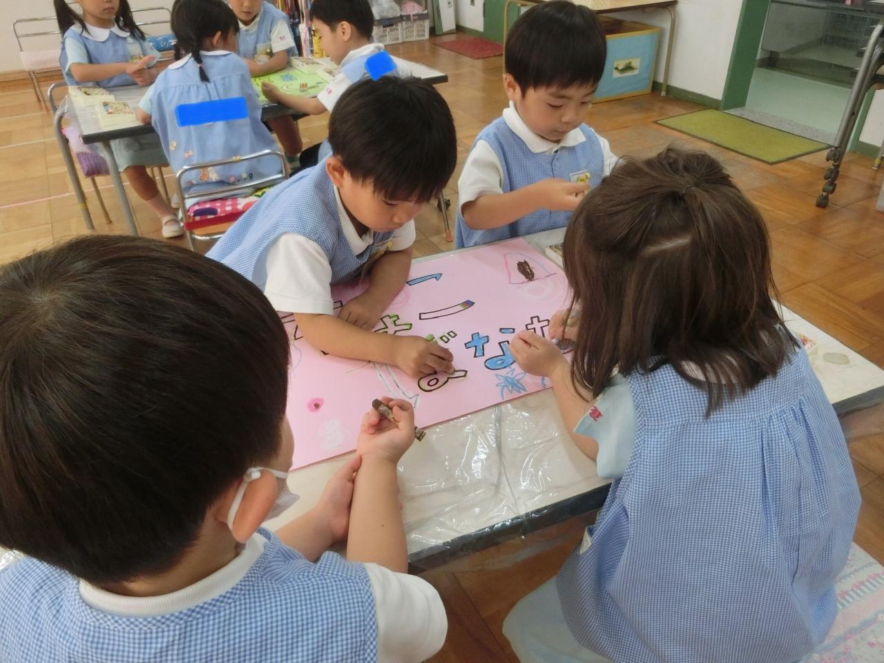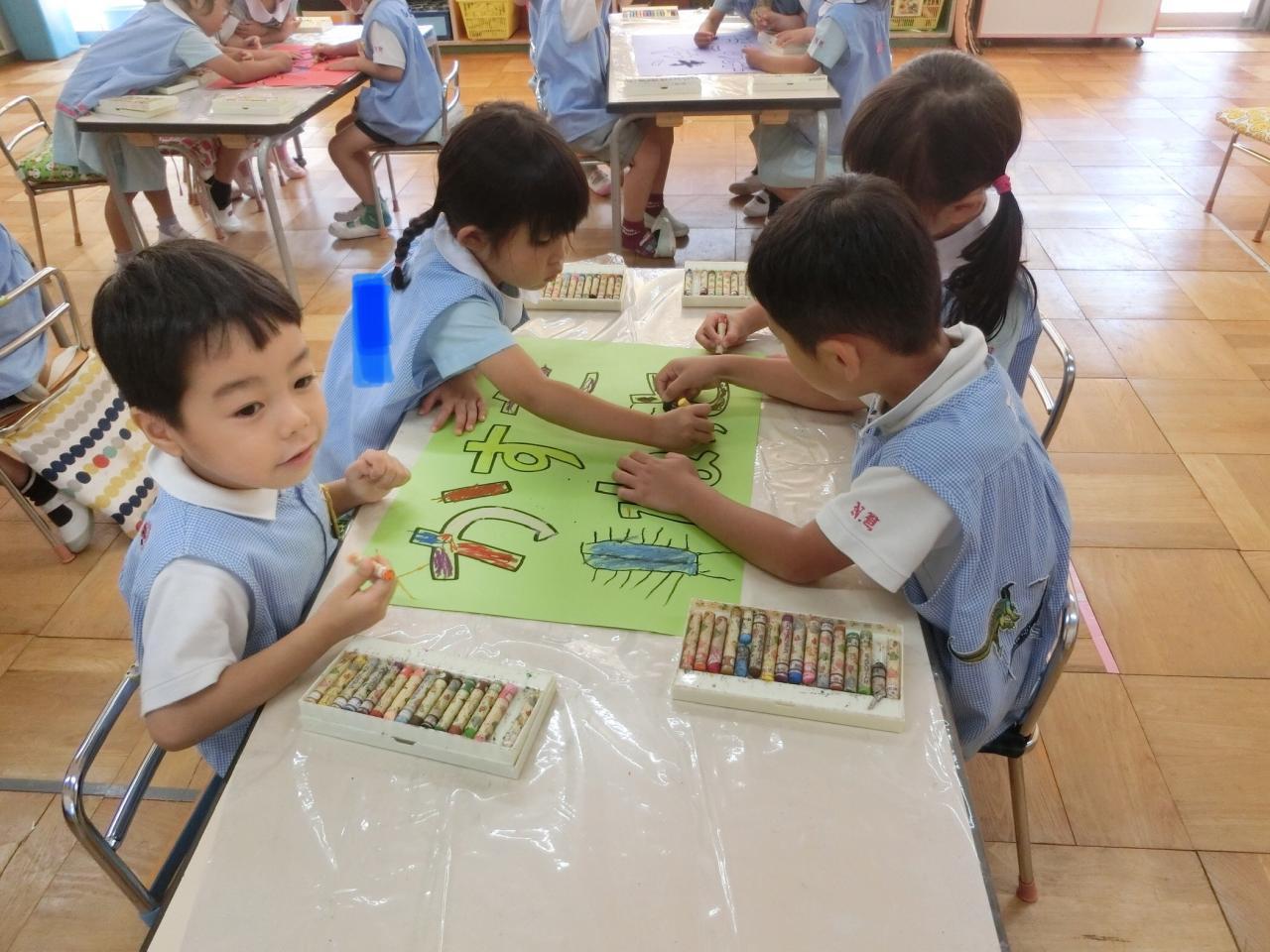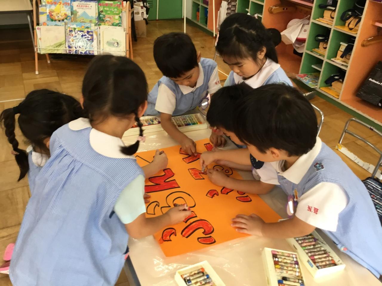 [お店の看板作り]グループの友だちと協力して色を塗りました!