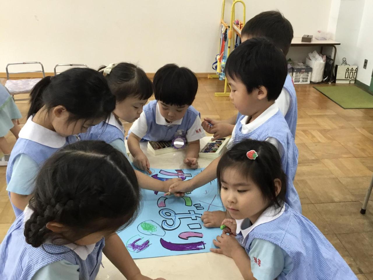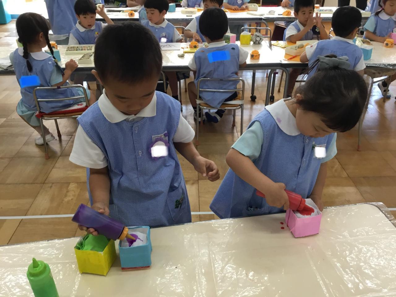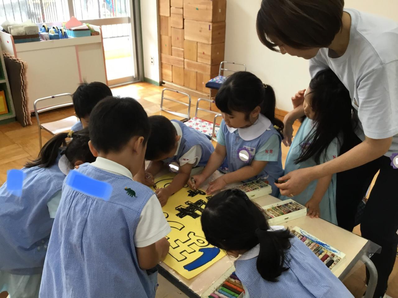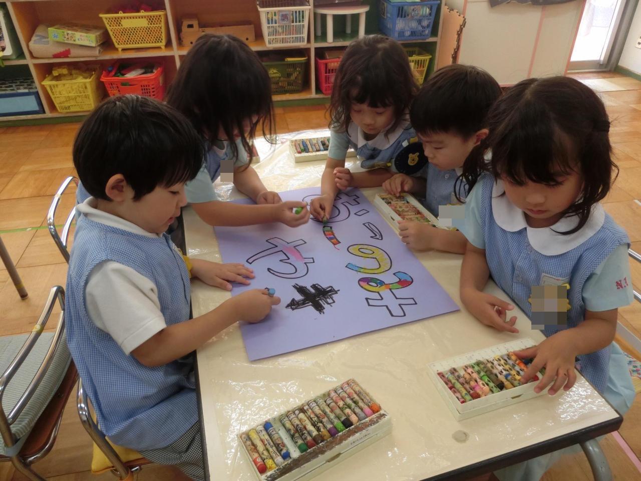[お店の看板作り]グループの友だちと協力して色を塗りました!