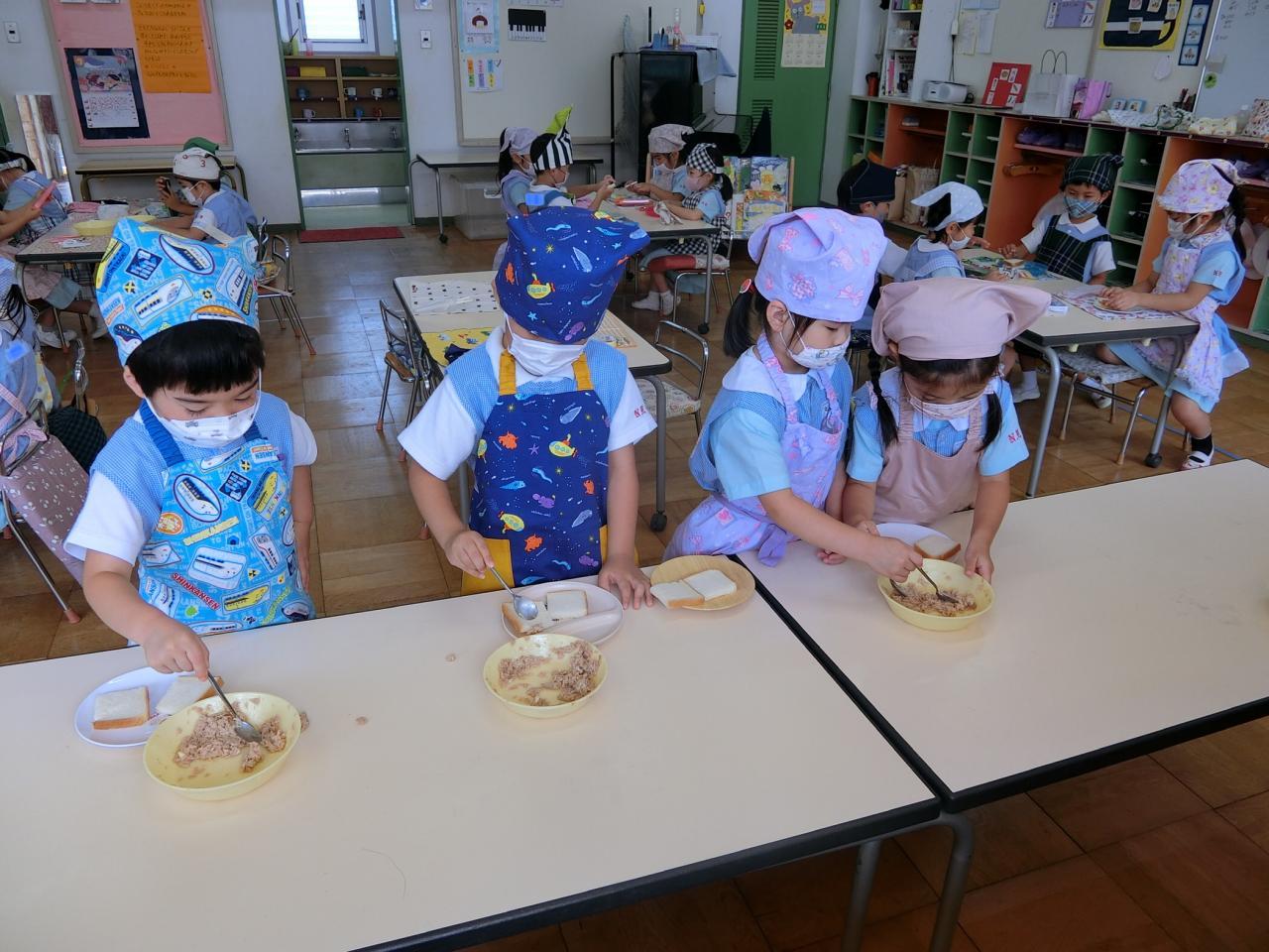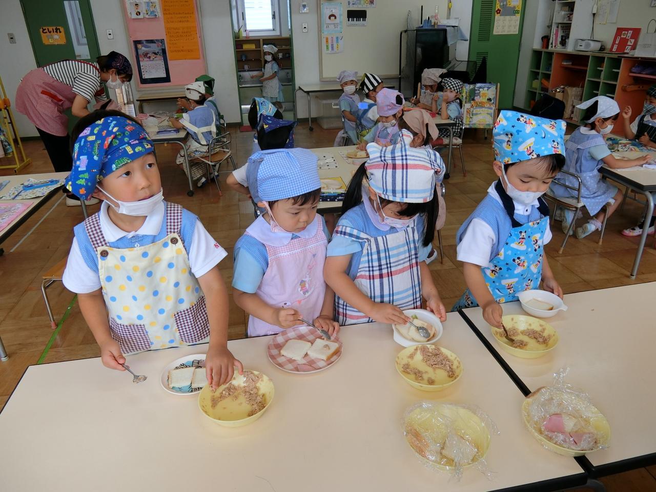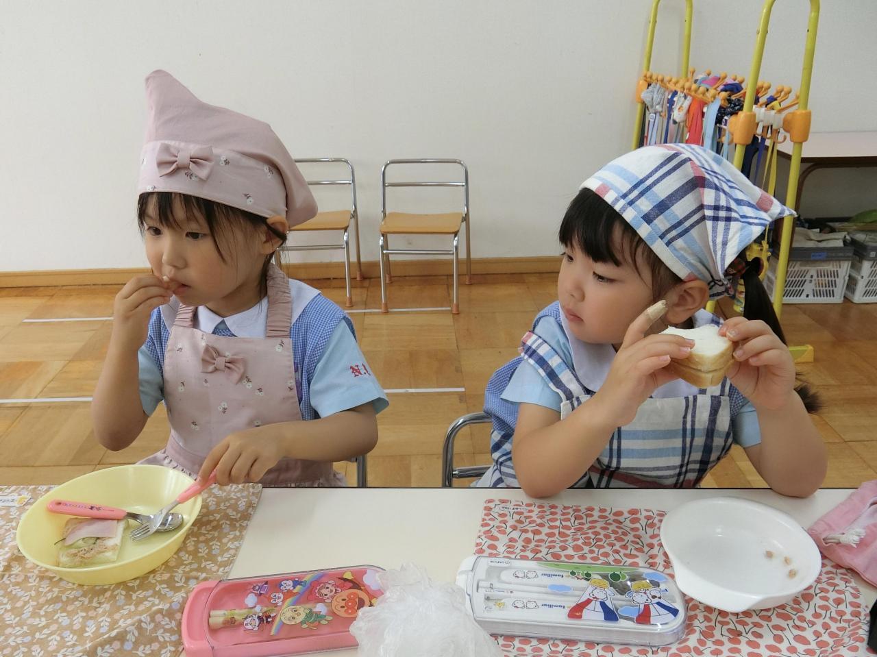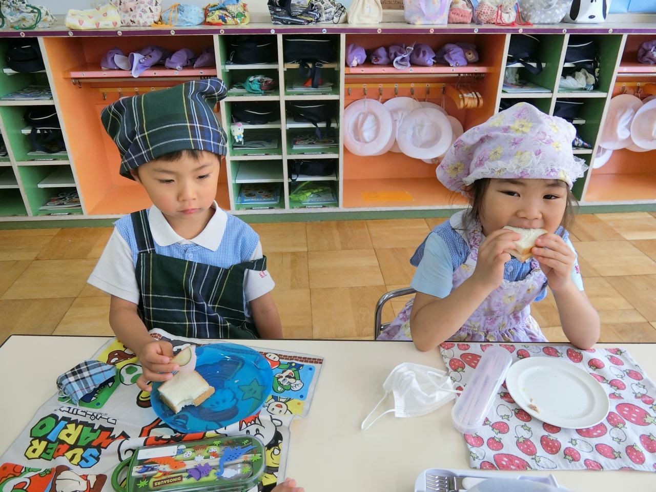 完成したサンドイッチを食べると「美味しい〜♡」と呟き、笑顔になる子どもたち。お皿にあったはずのサンドイッチは、すぐになくなり、全員ぴかぴかのお皿になりました♪