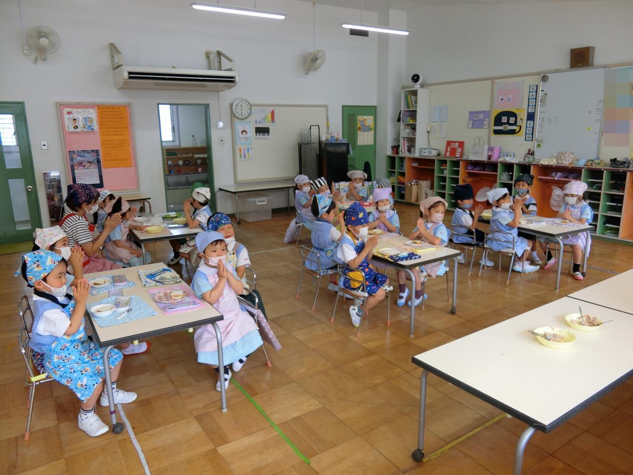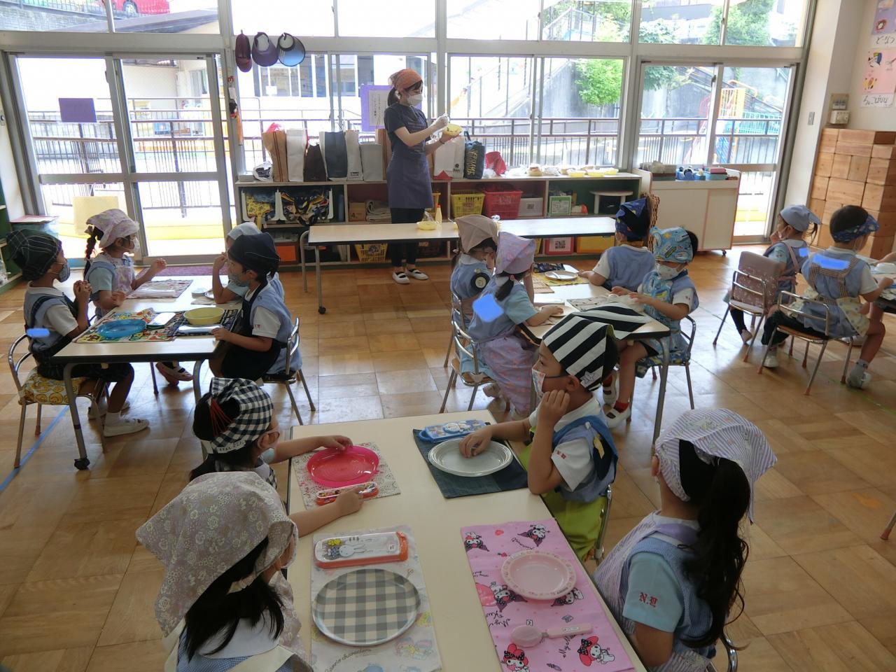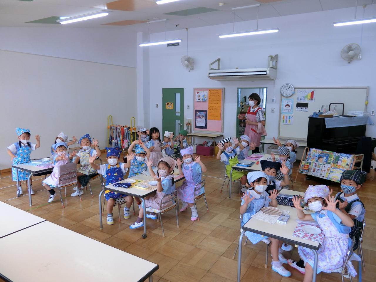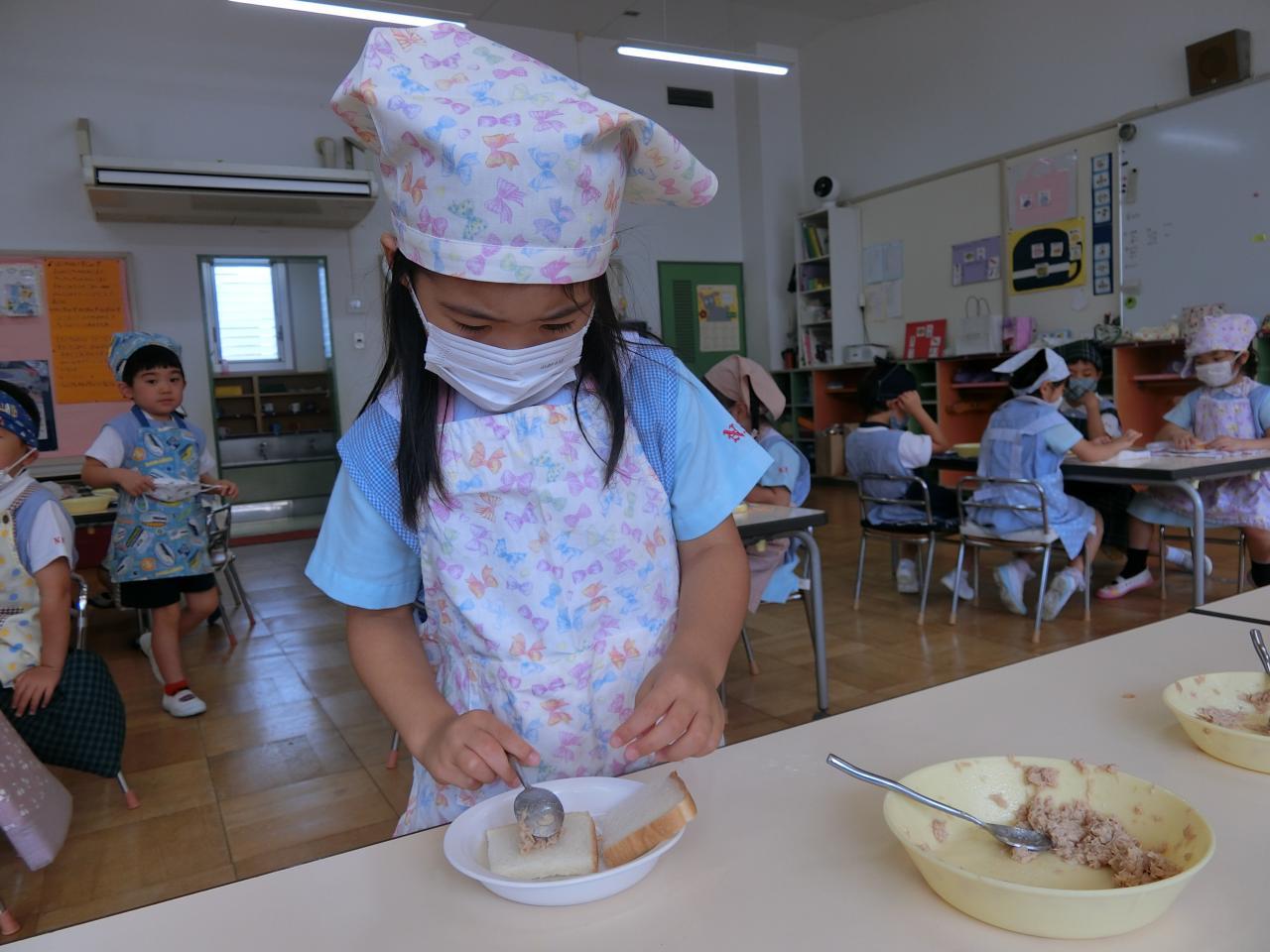 完成したサンドイッチを食べると「美味しい〜♡」と呟き、笑顔になる子どもたち。お皿にあったはずのサンドイッチは、すぐになくなり、全員ぴかぴかのお皿になりました♪